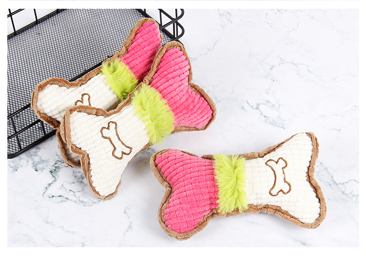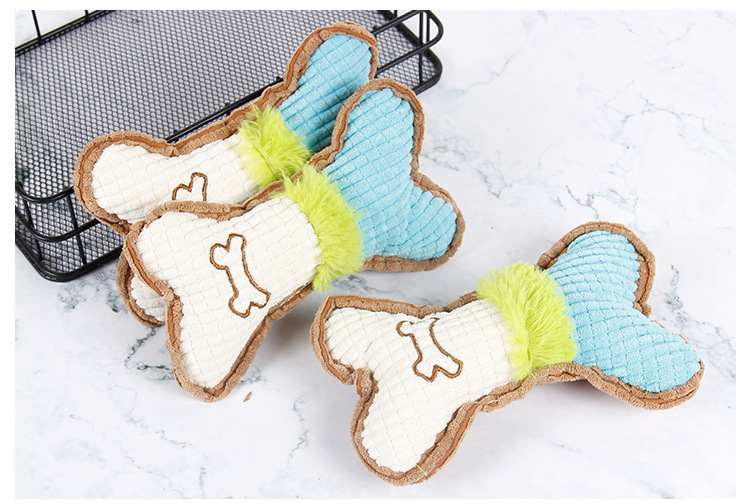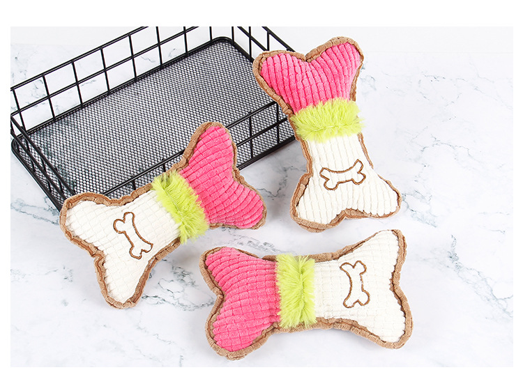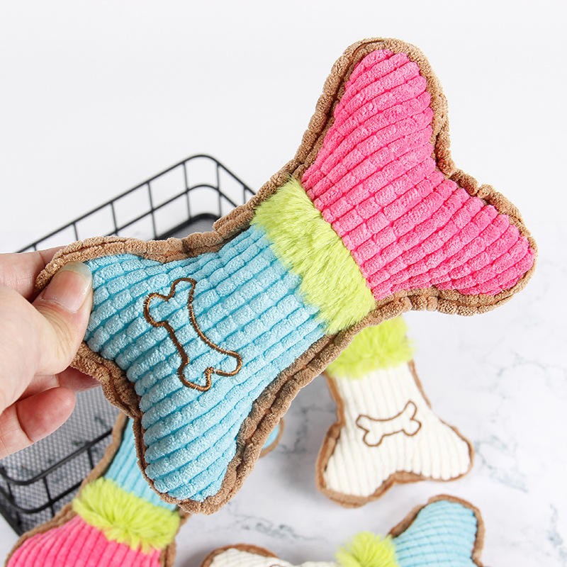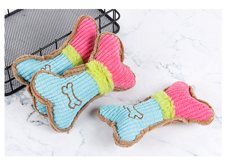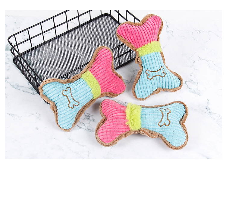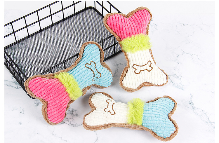 국경 간 뜨거운 판매 애완 동물 더블 컬러 작은 뼈 머리 소리 치아 연삭 및 물린 방지 고양이와 개 플러시 장난감 옥수수 커널 뼈 모델스토어 가기