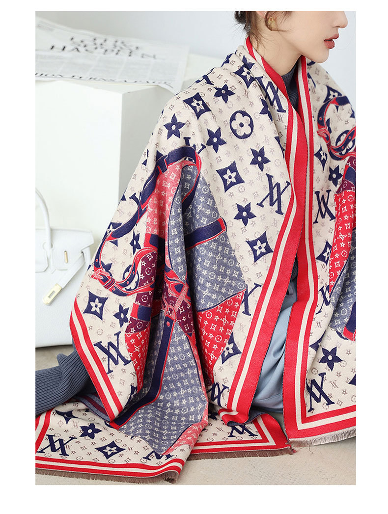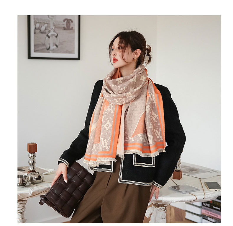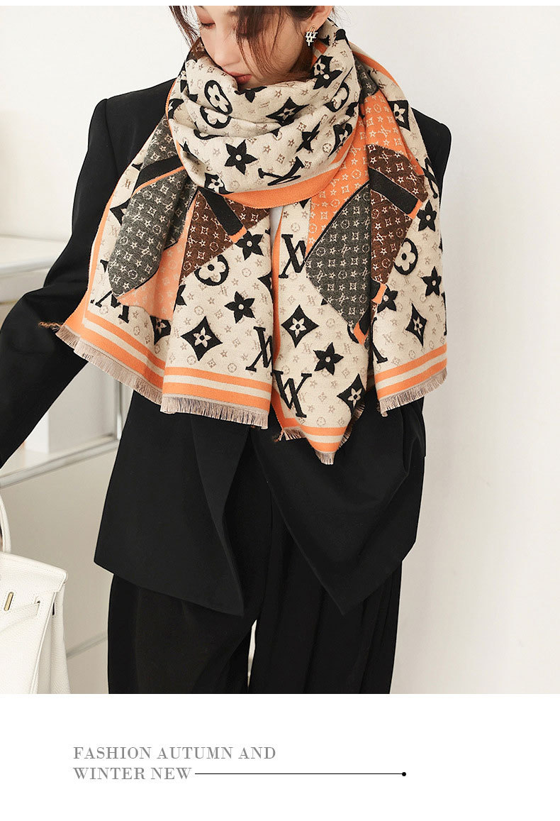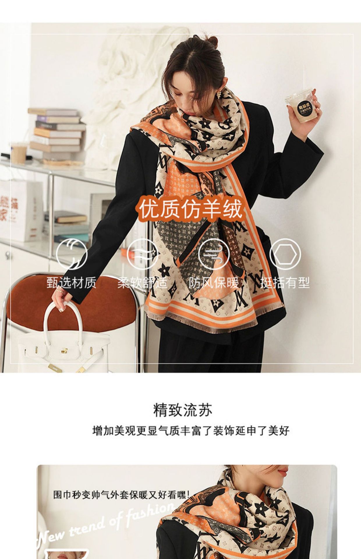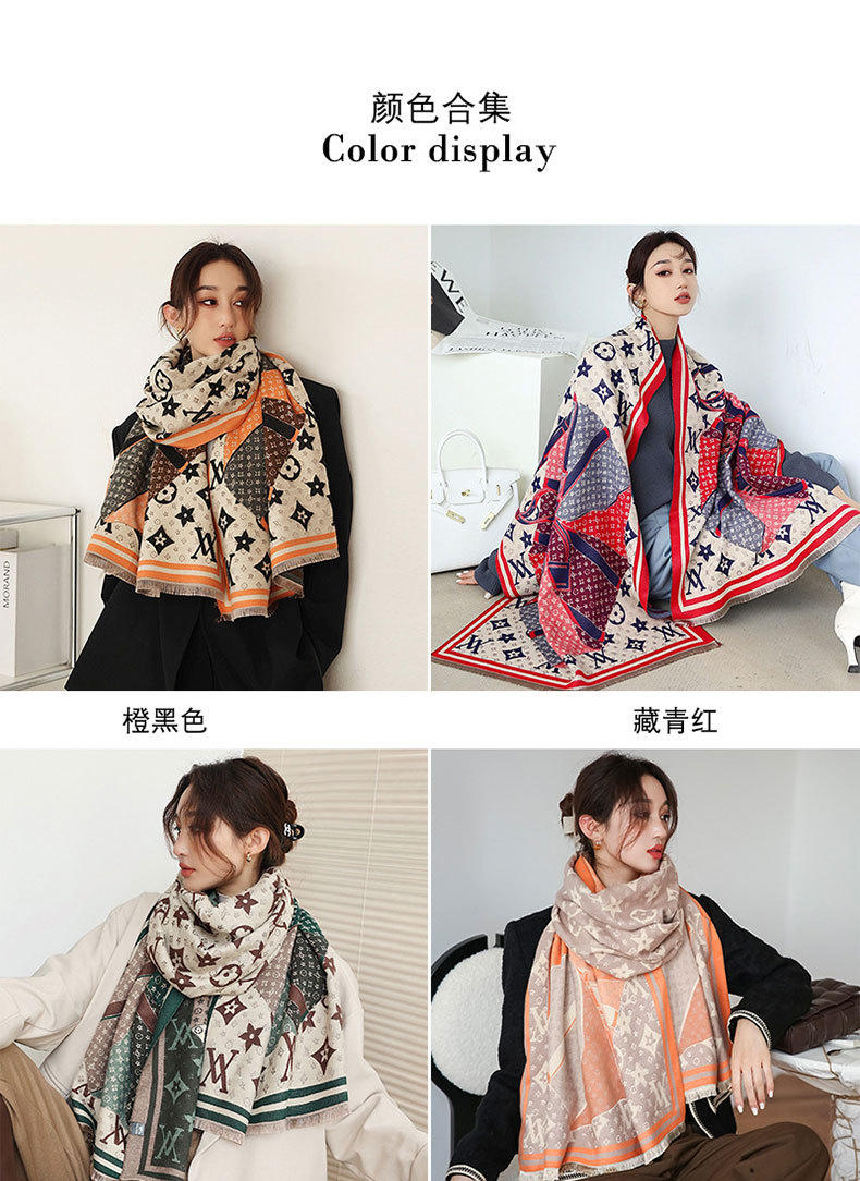 新款仿羊绒百搭围巾女冬季加厚外搭保暖披肩两用韩版字母长款围脖
