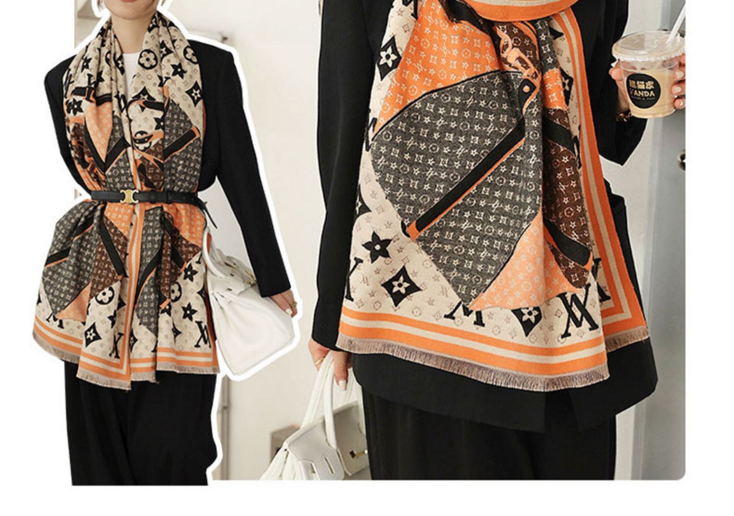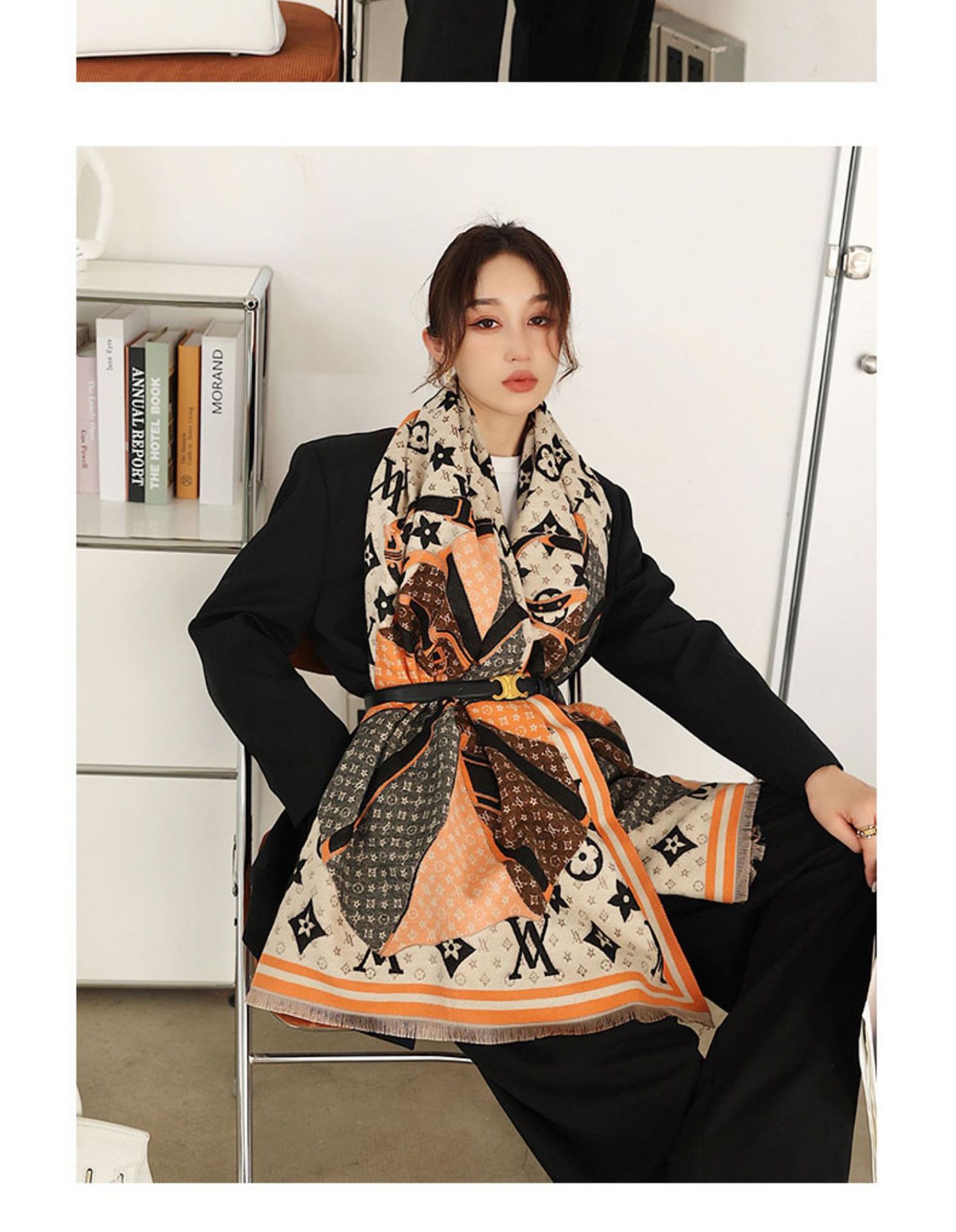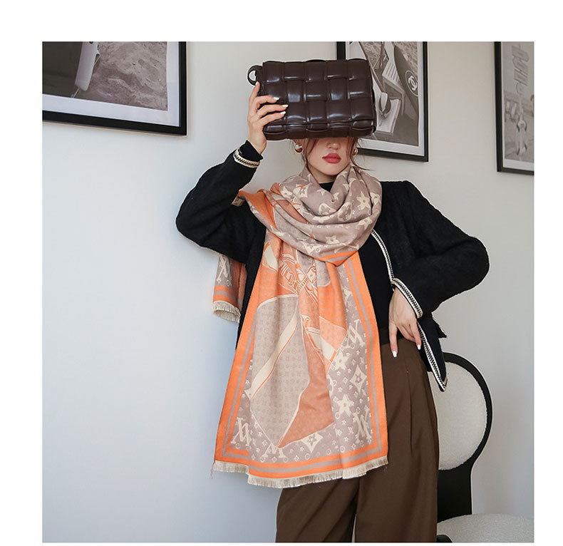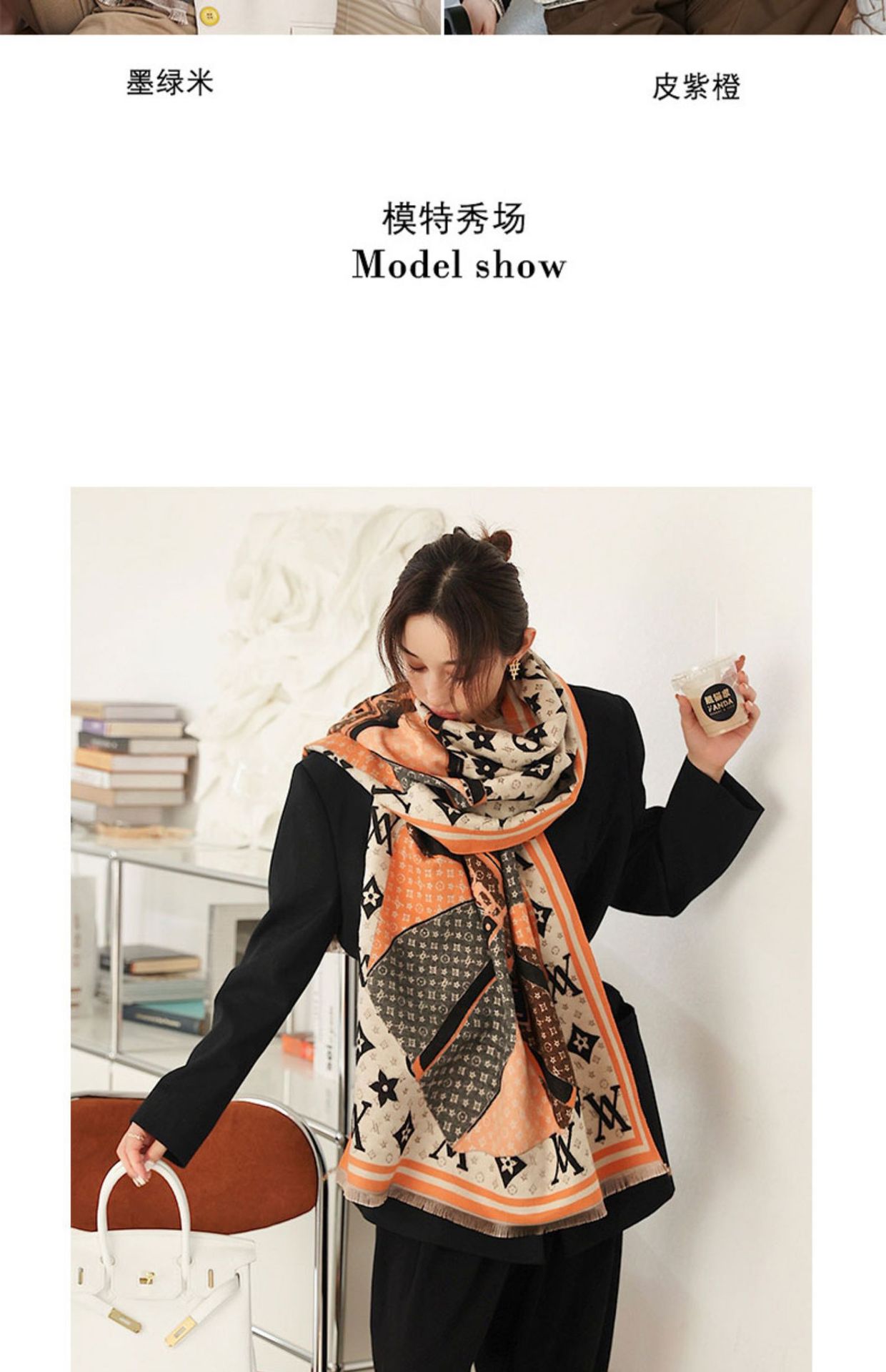 新款仿羊绒百搭围巾女冬季加厚外搭保暖披肩两用韩版字母长款围脖