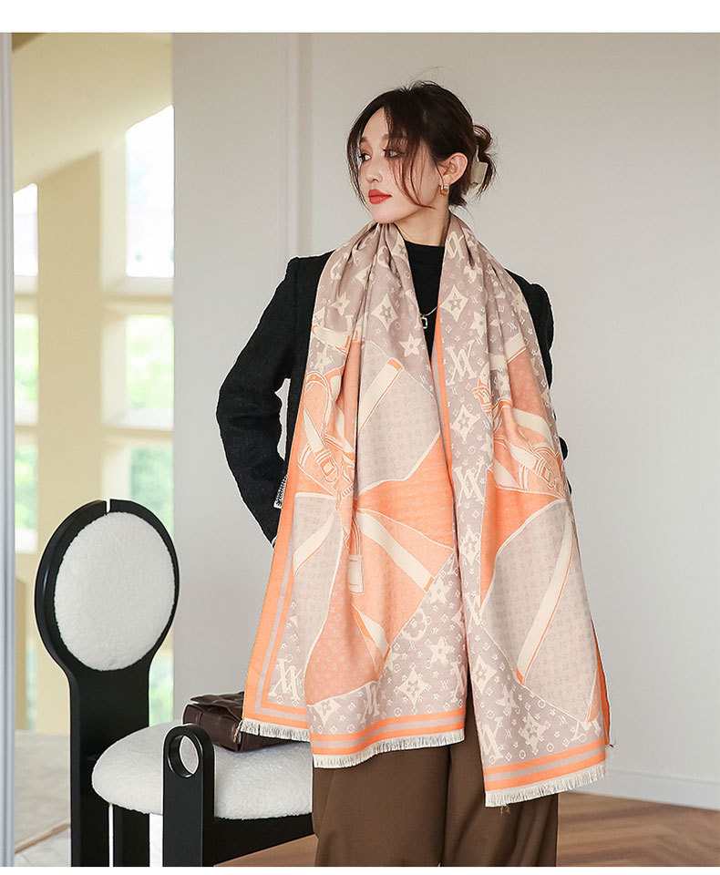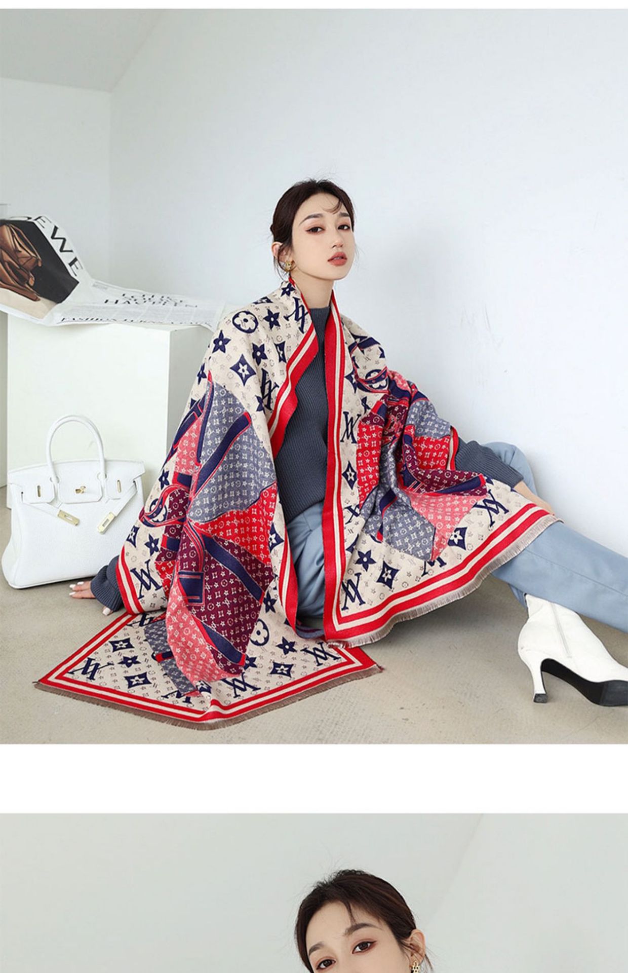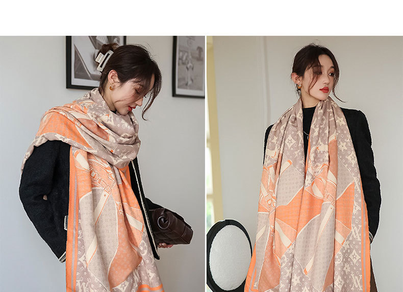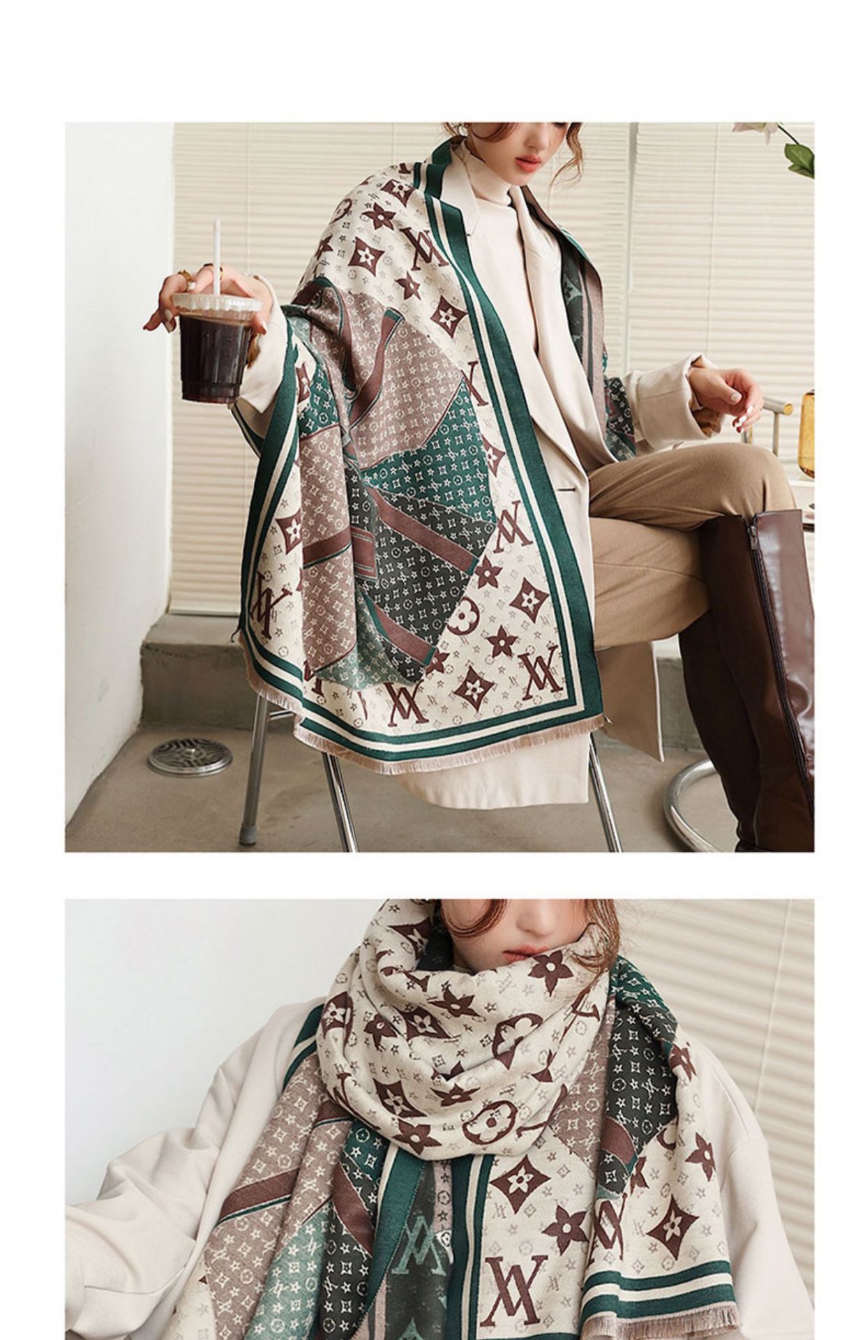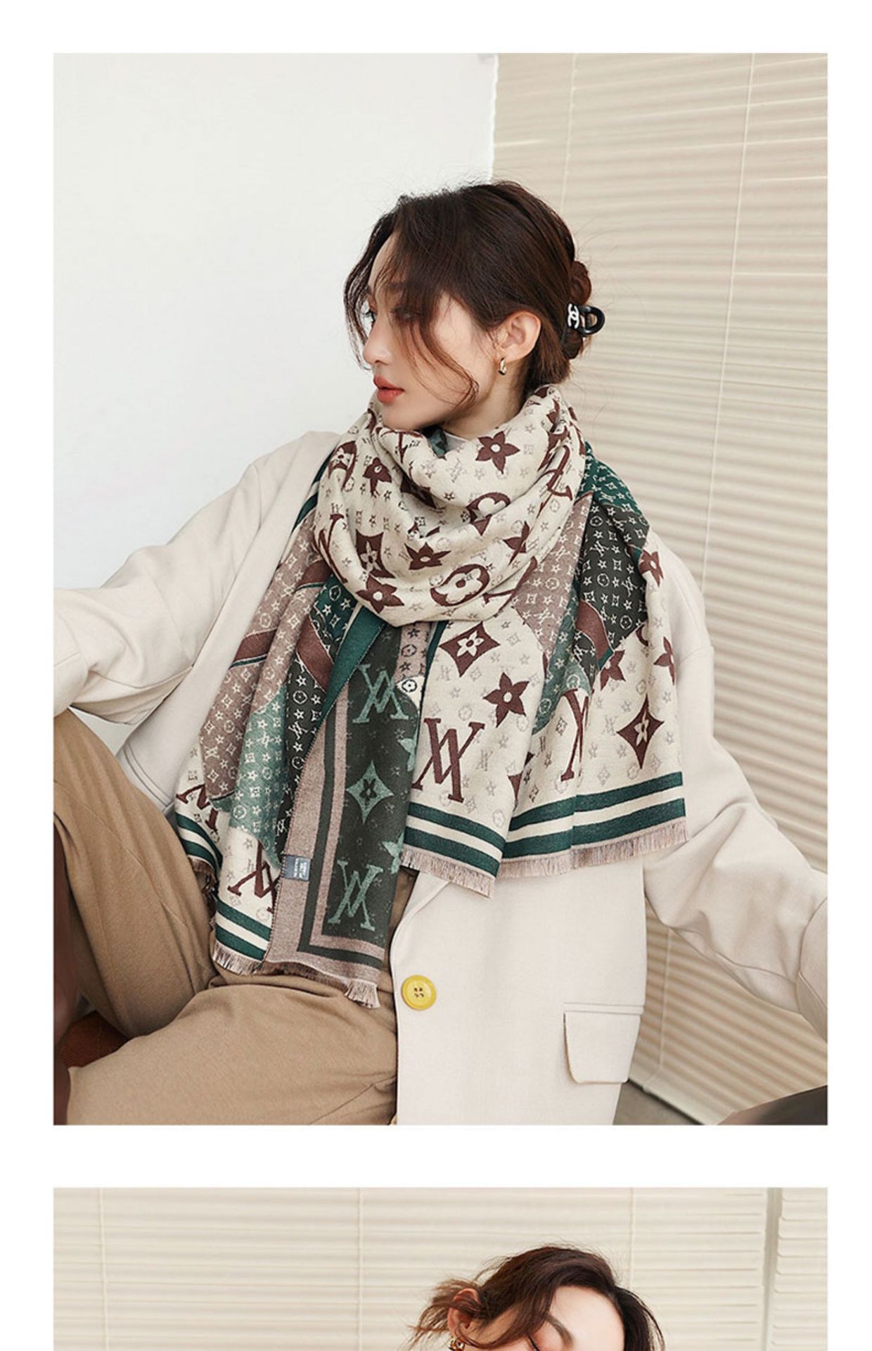 新款仿羊绒百搭围巾女冬季加厚外搭保暖披肩两用韩版字母长款围脖