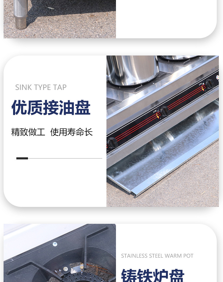 ③.接水盘由于左侧有腿子以及右侧进气口的缘故,做不到边;炉头炉盘是铸铁的,见水生锈是正常的化学反应,介意慎拍!!!