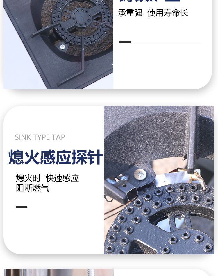 ⑤.应国家法律法规要求。建议购买标准带熄火保护款的炉灶。无熄火装置的均以炉具配件半成品形式出售,需要简单组装才能使用,有熄火保护需求的顾客,请到货后自行加装配备或直接购买标准款带熄保炉具。