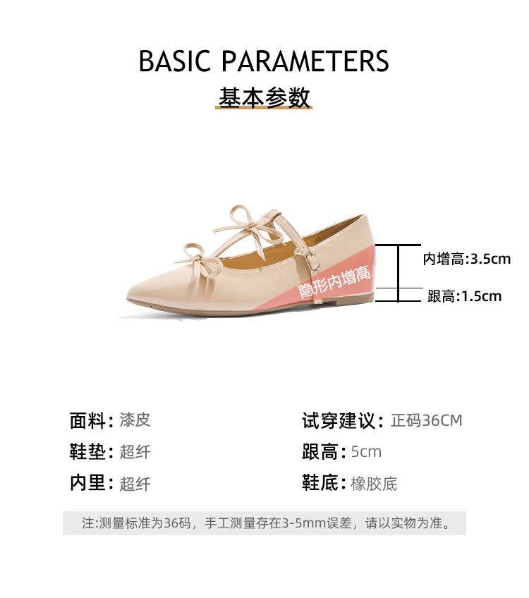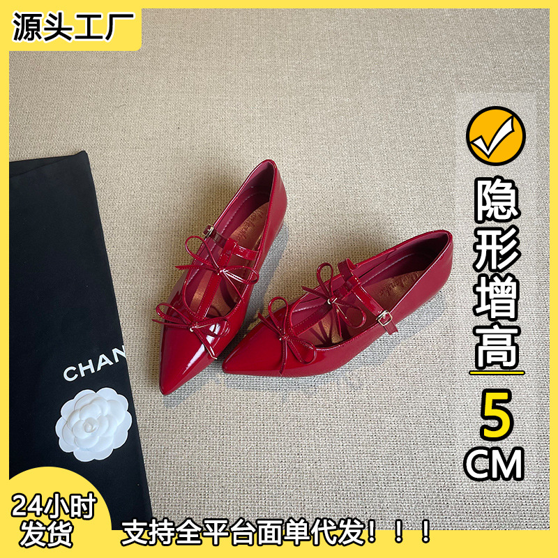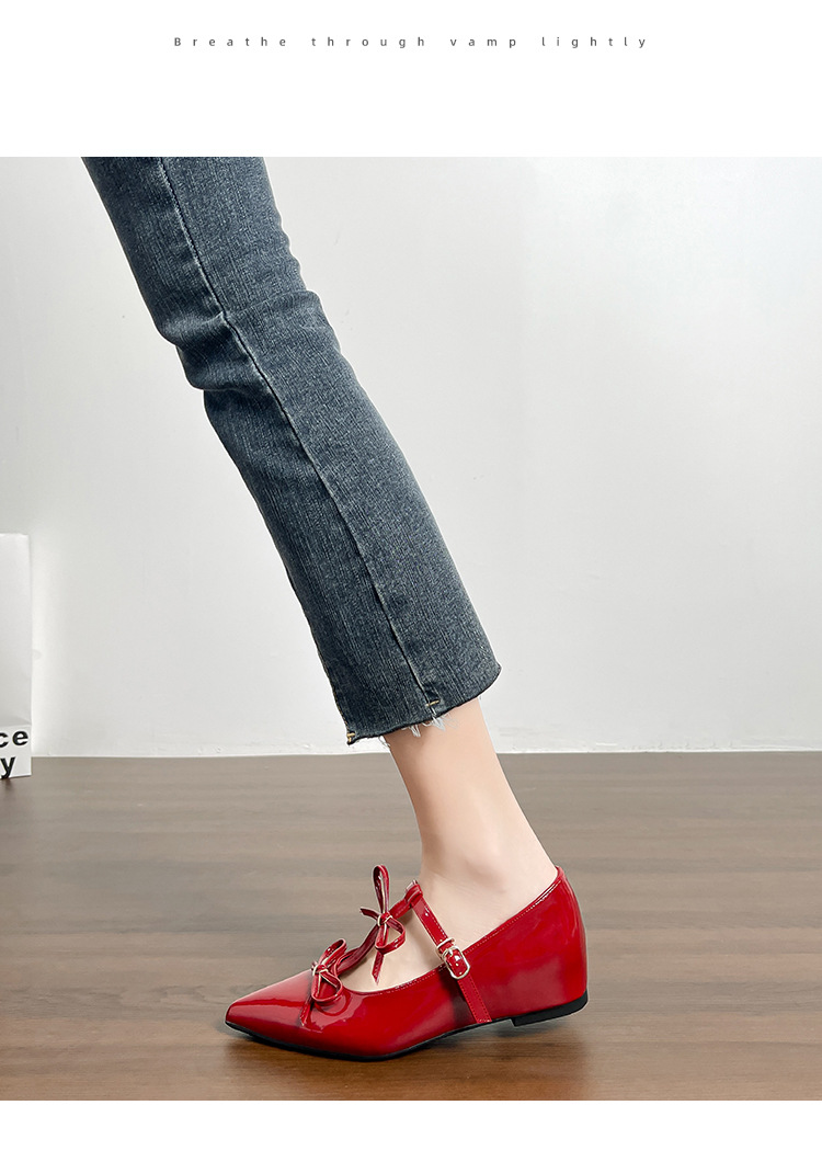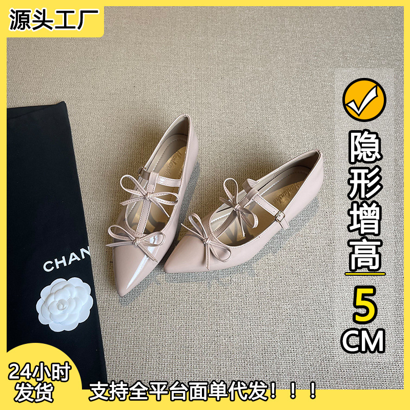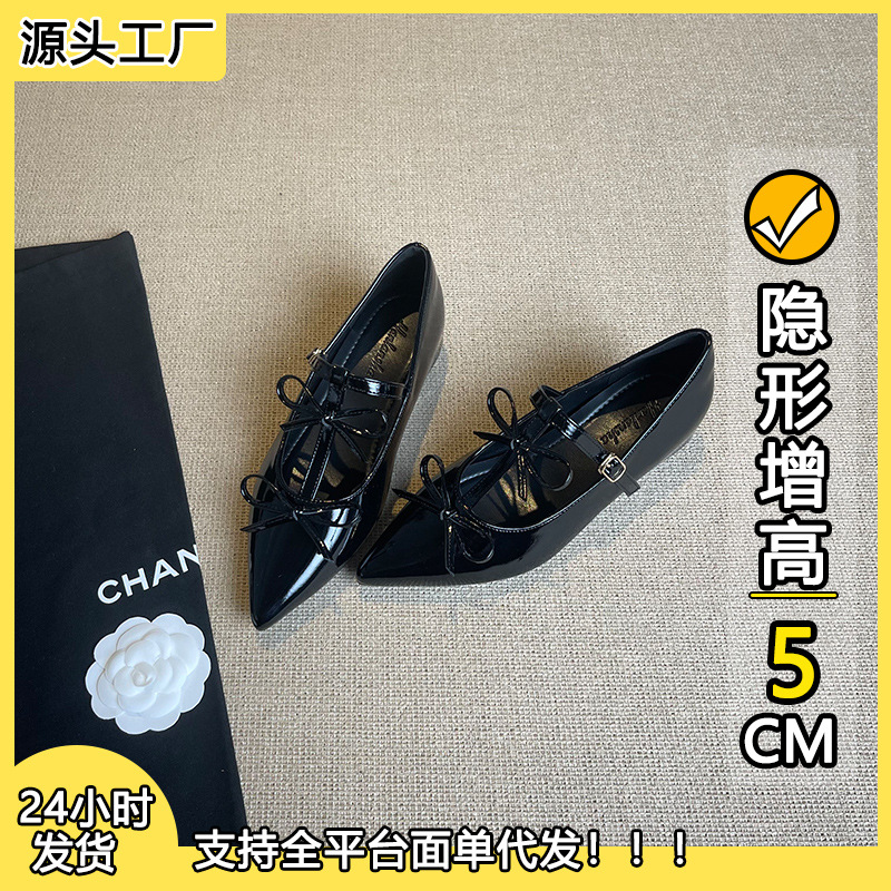 달콤한 나비 뾰족한 신발 2025 새로운 스타일 내부 높이 5cm 작은 사람들을 위한 다용도 메리 제인 플랫 슈즈스토어 가기