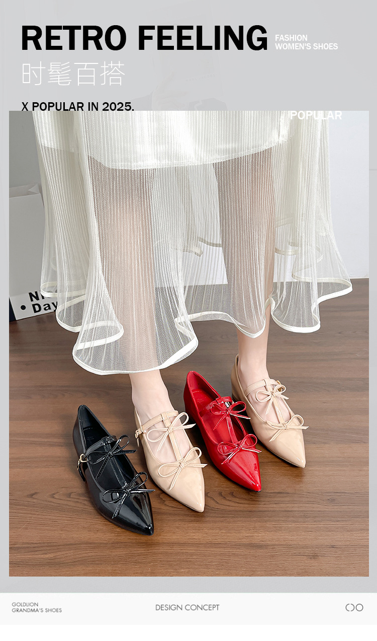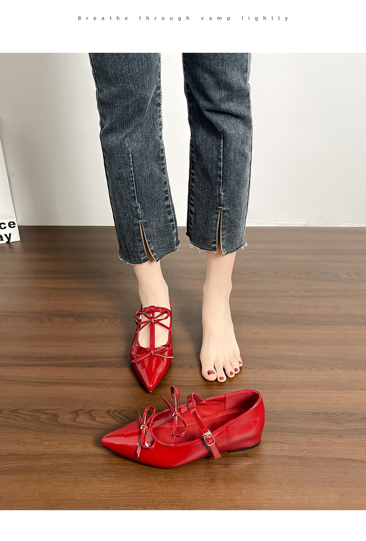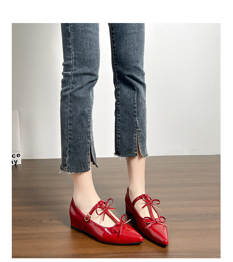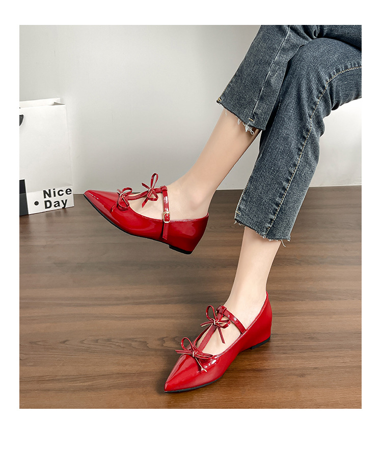 달콤한 나비 뾰족한 신발 2025 새로운 스타일 내부 높이 5cm 작은 사람들을 위한 다용도 메리 제인 플랫 슈즈스토어 가기