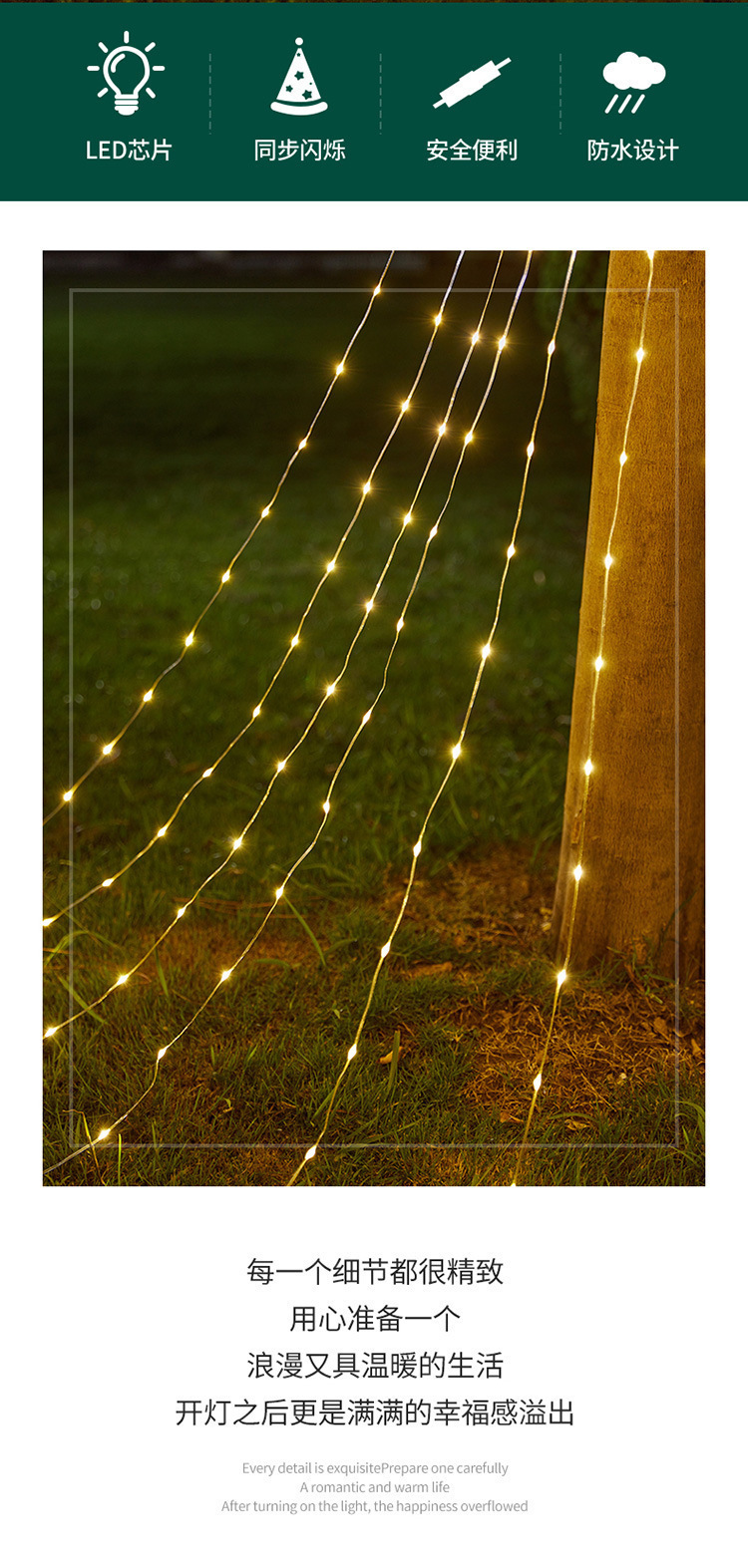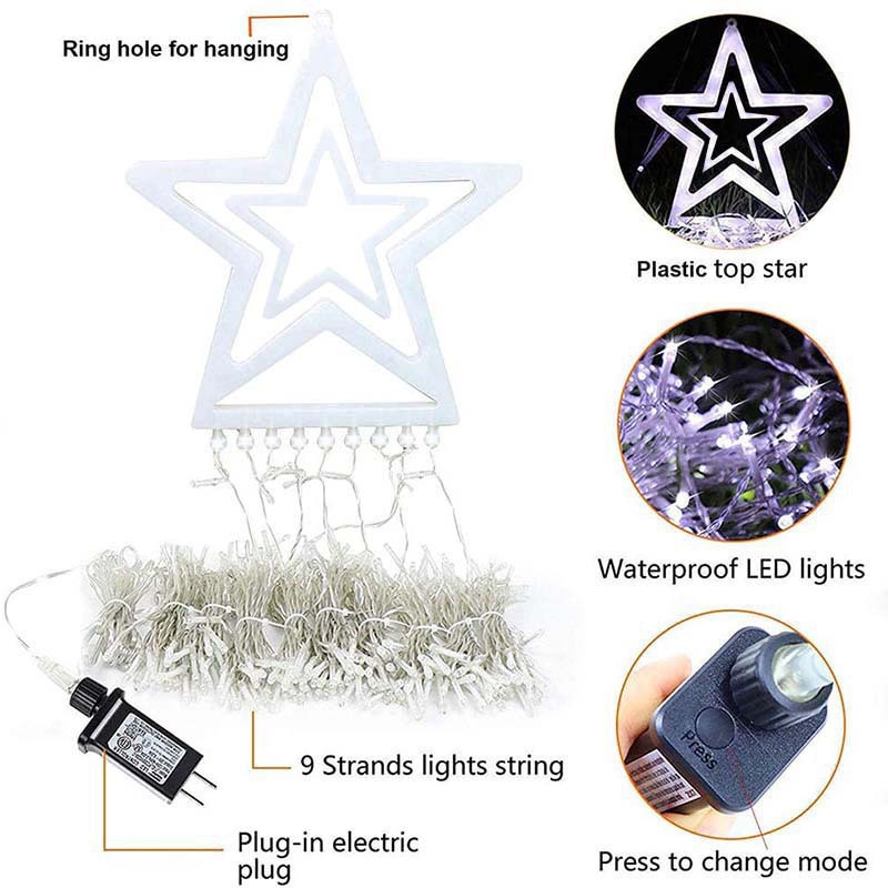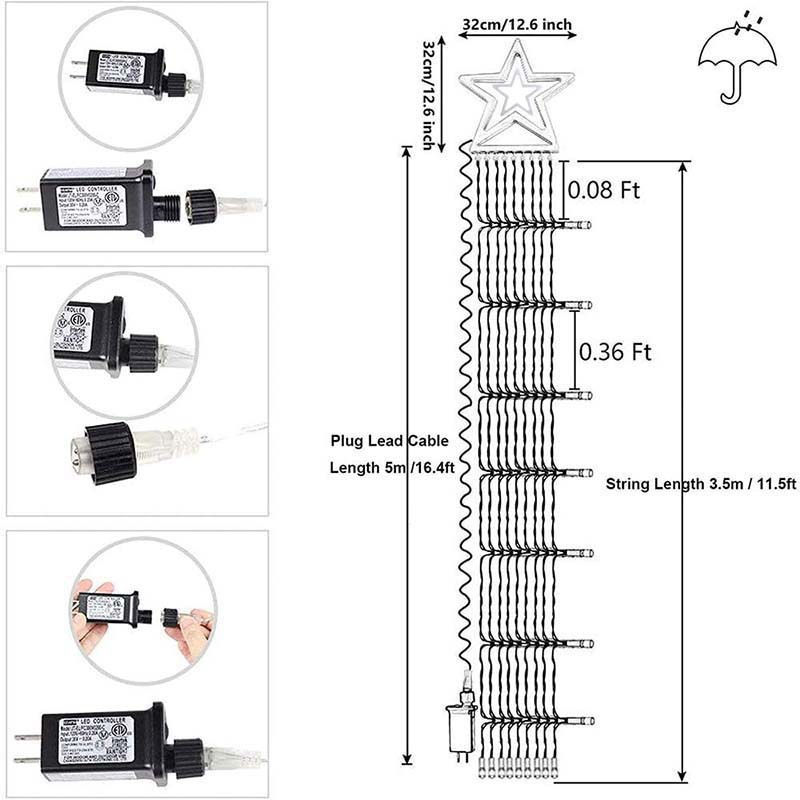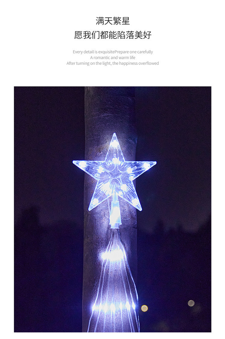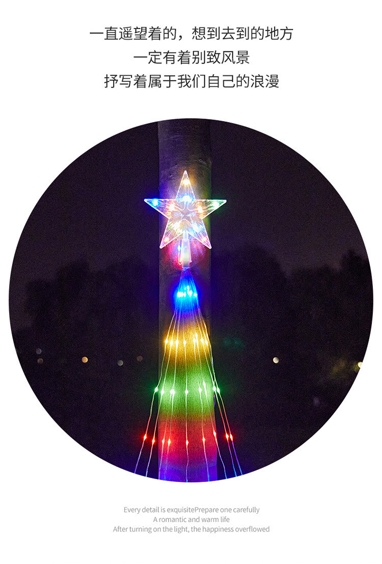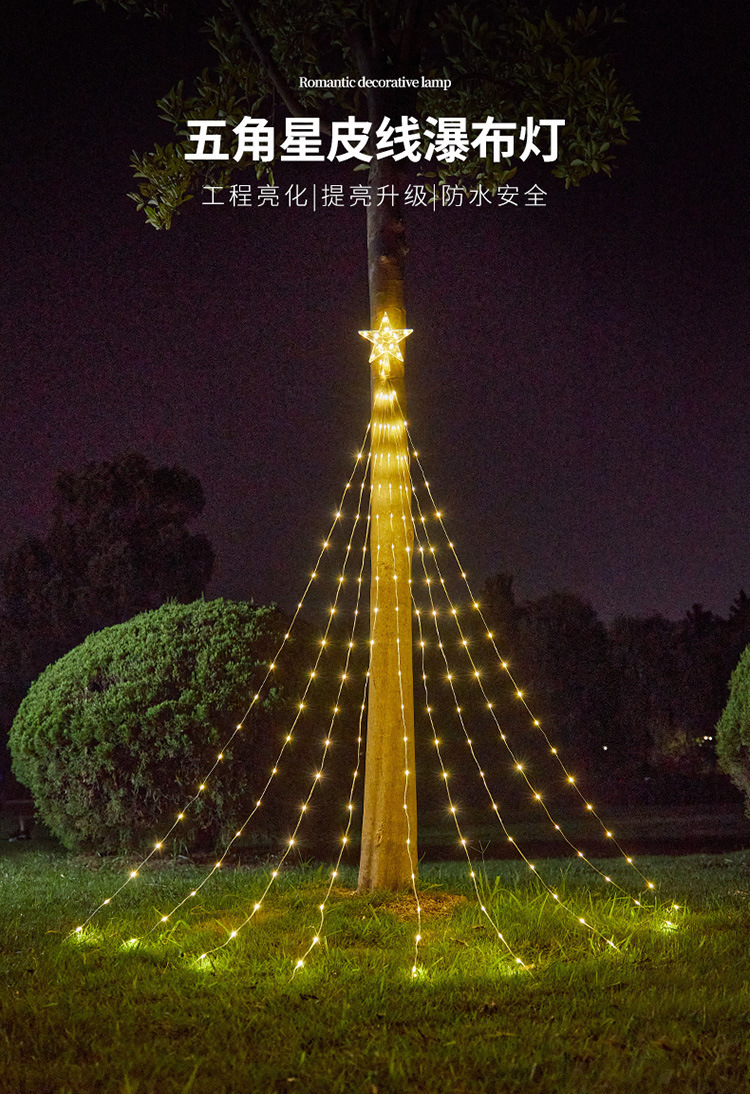 LED 오각별 가죽줄 조명 폭포 조명 흐르는 물 꼬리 조명 스트링 크리스마스 장식 조명 정원 별빛 조명