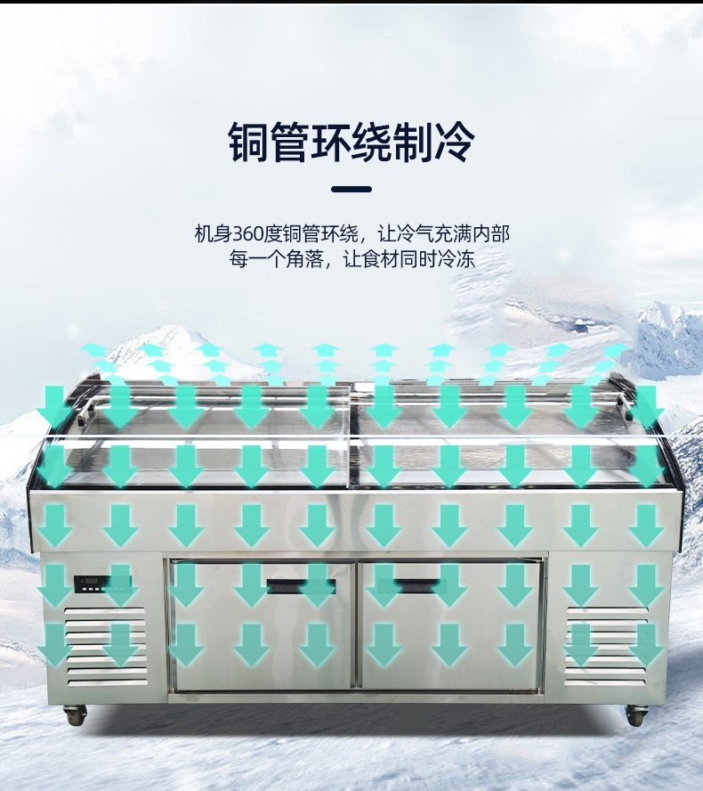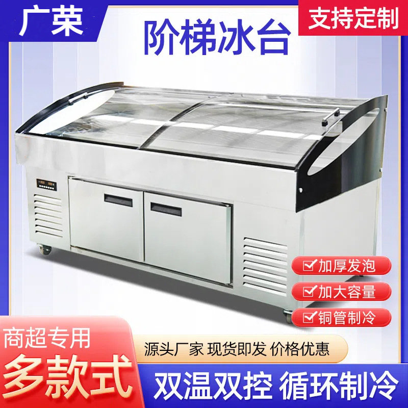 스텝 아이스 테이블 과일 낚시 바베큐 스톨 신선한 유지 디스플레이 캐비닛 소스 델리 더블 온도 주문 캐비닛 해산물 아이스 테이블스토어 가기