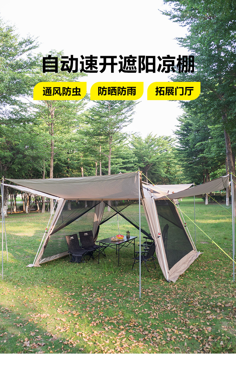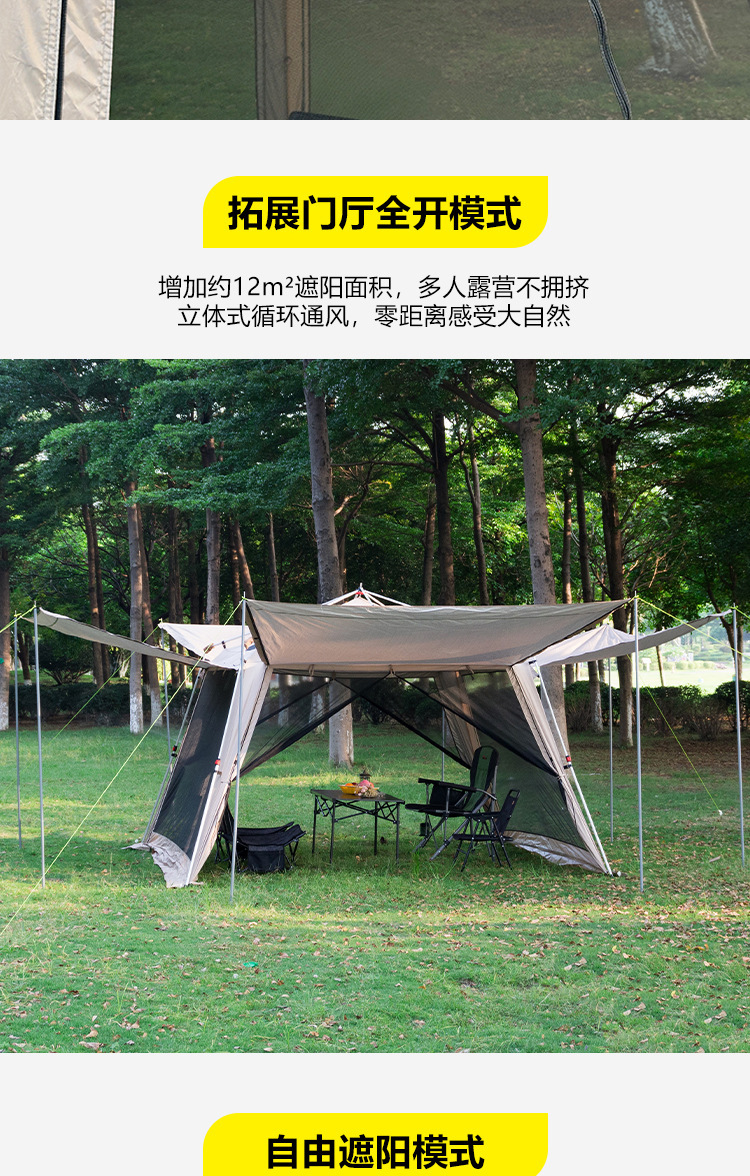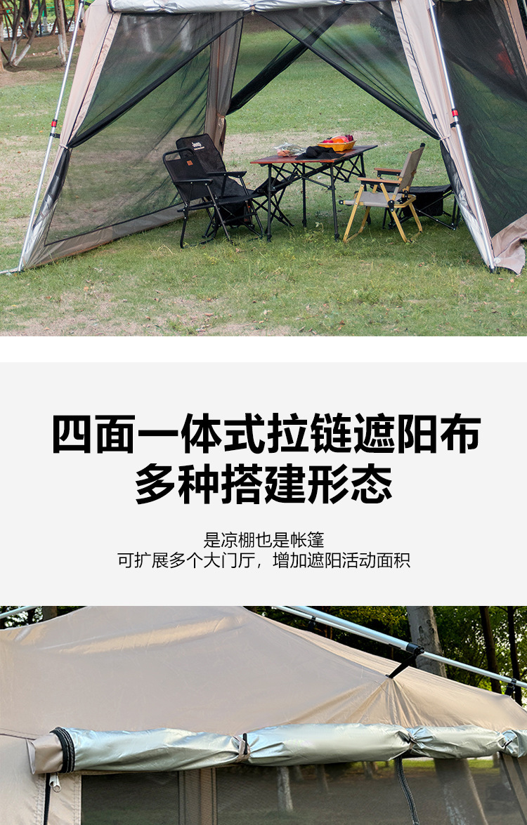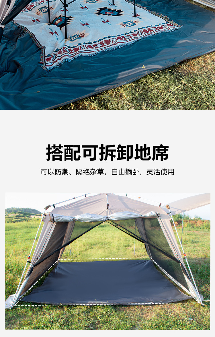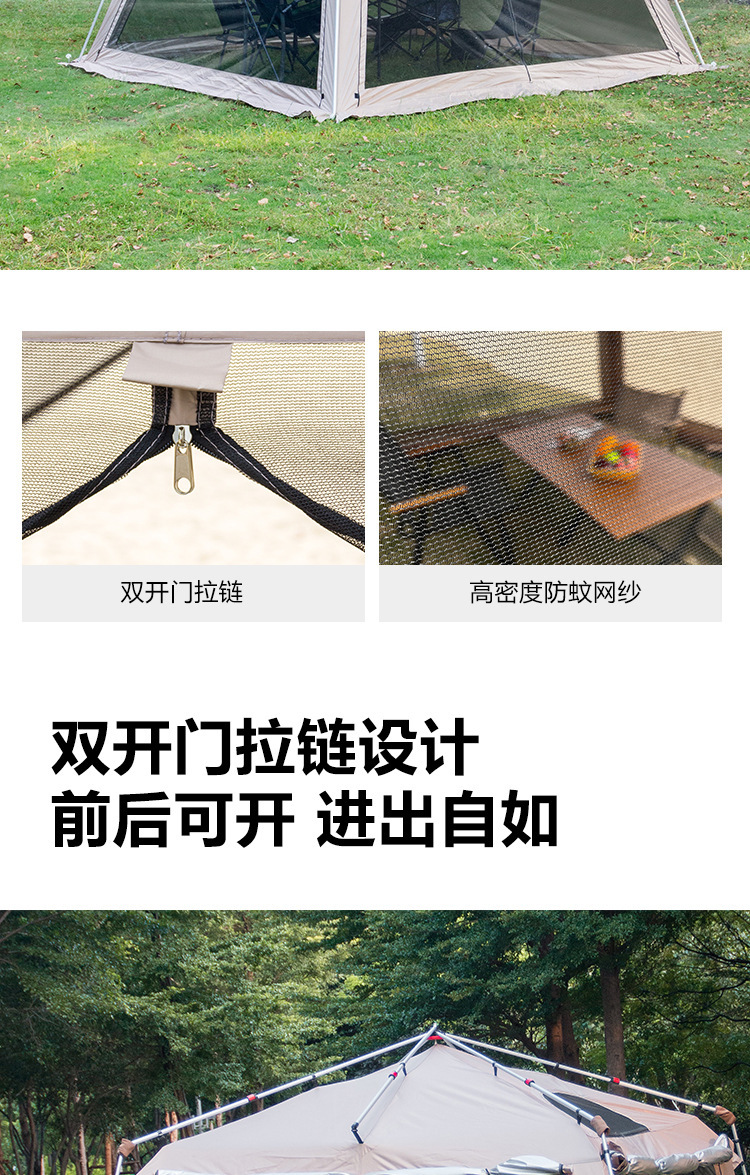 야외 큰 텐트 1 실 4 홀 터널 캠핑 텐트 장비 룸 타입 하룻밤 모기장 설치-무료스토어 가기