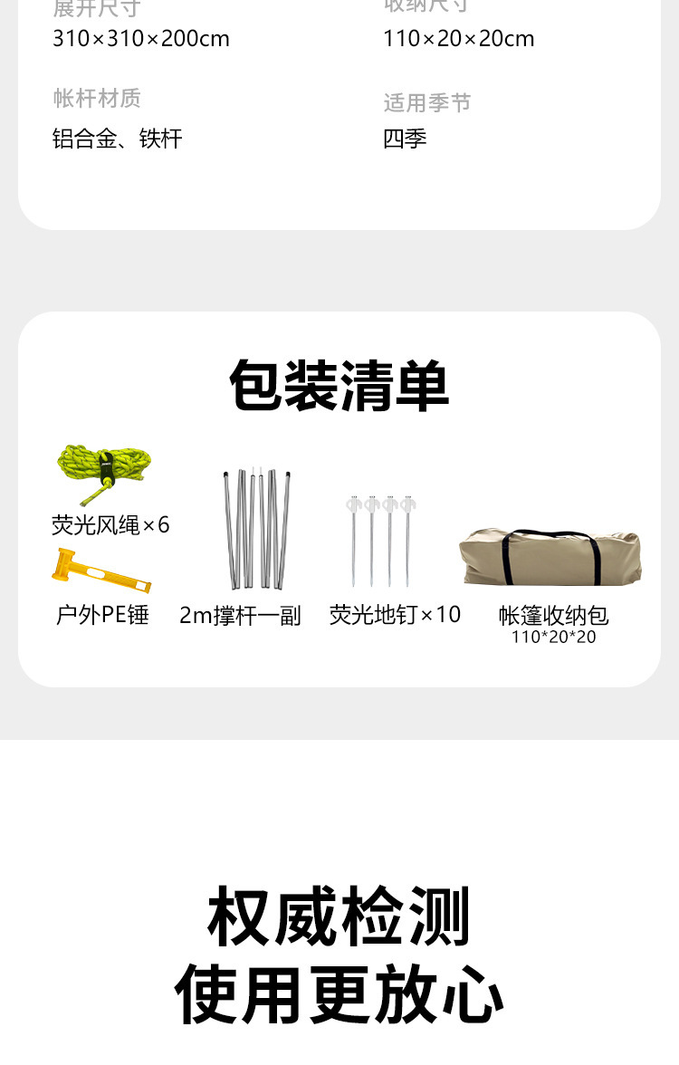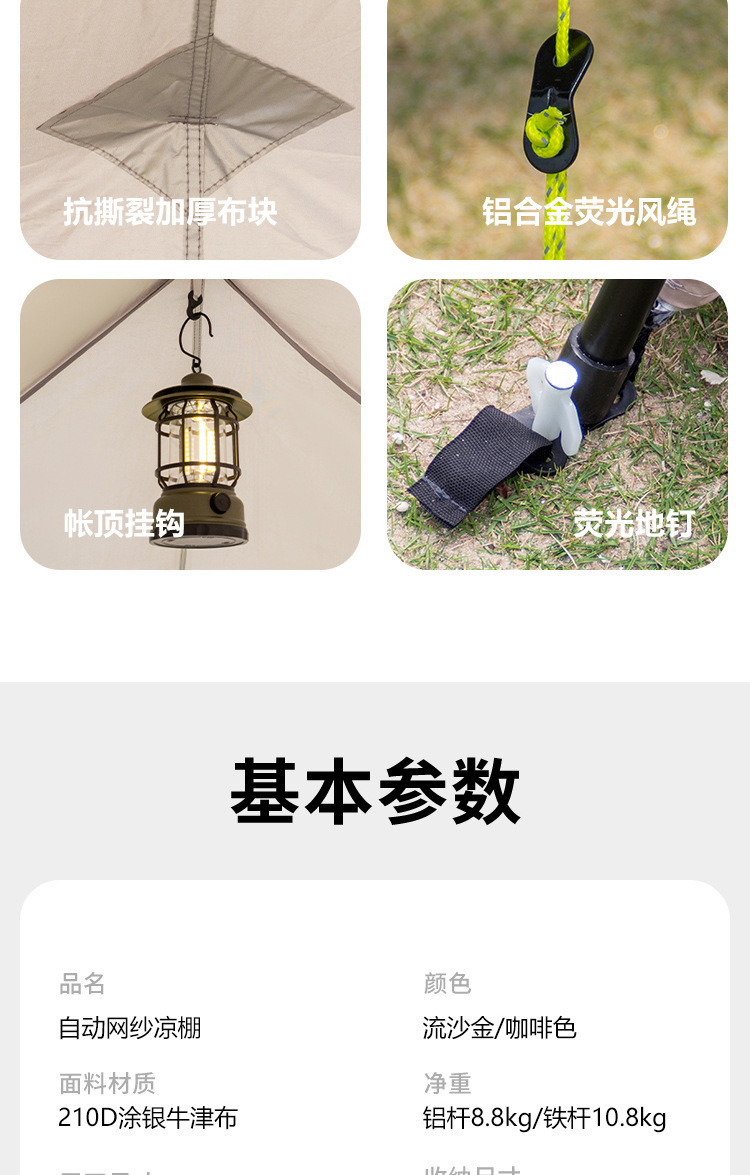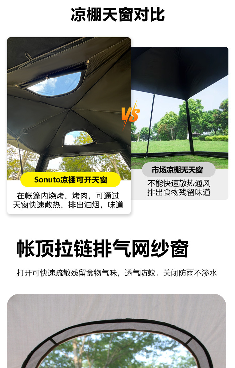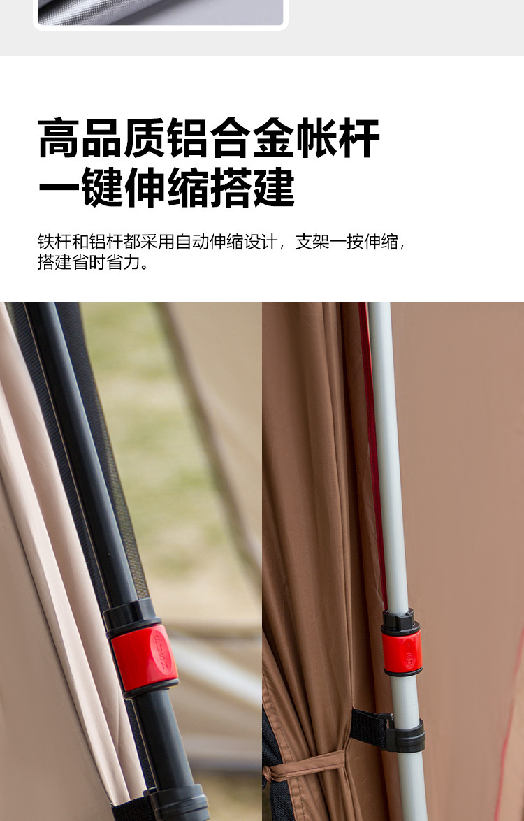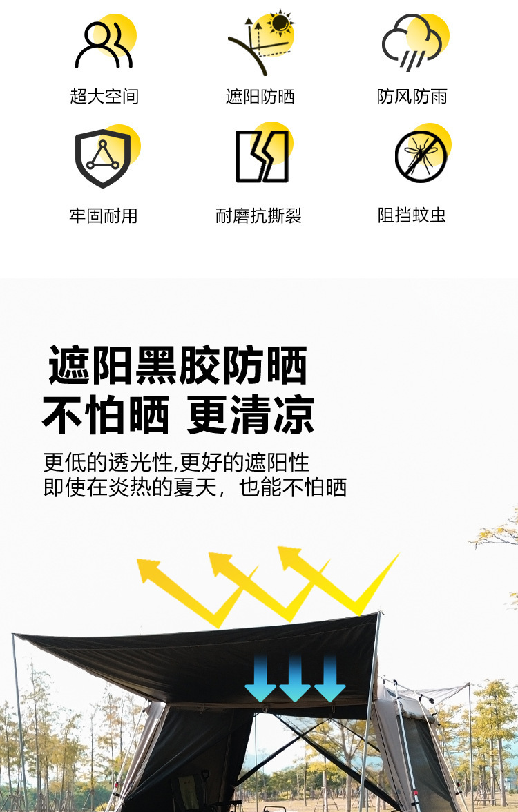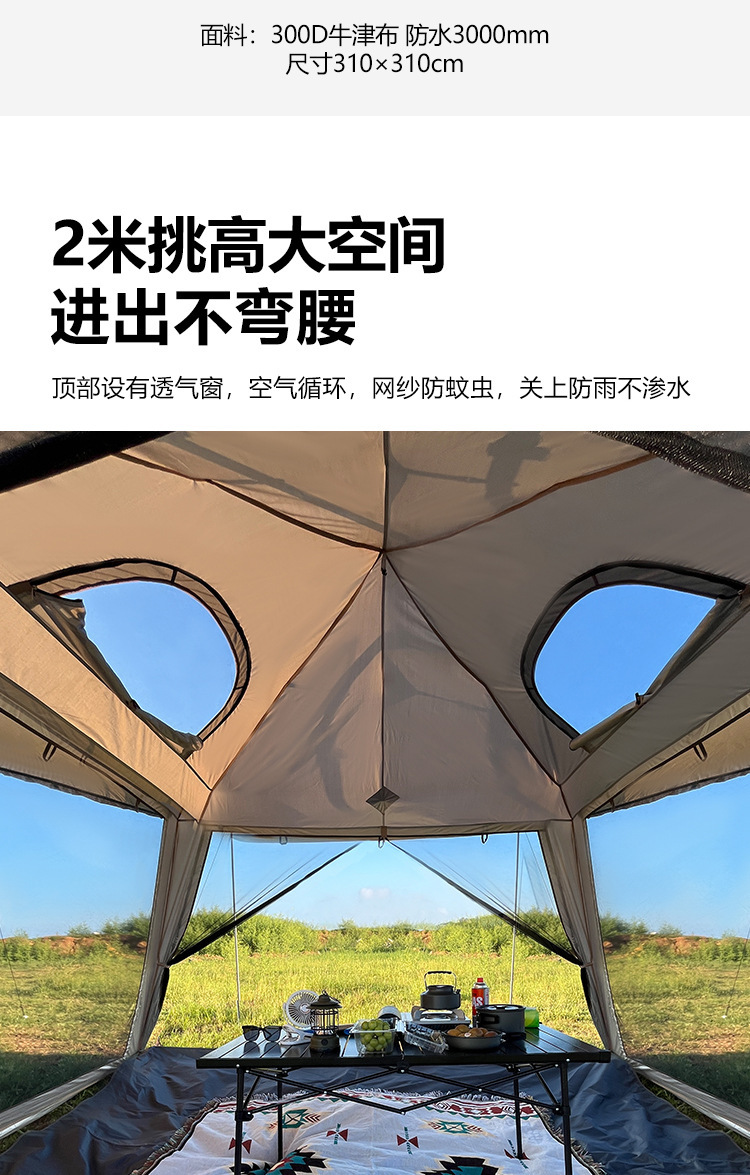 야외 큰 텐트 1 실 4 홀 터널 캠핑 텐트 장비 룸 타입 하룻밤 모기장 설치-무료스토어 가기