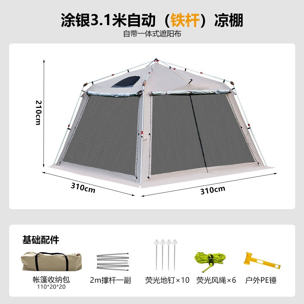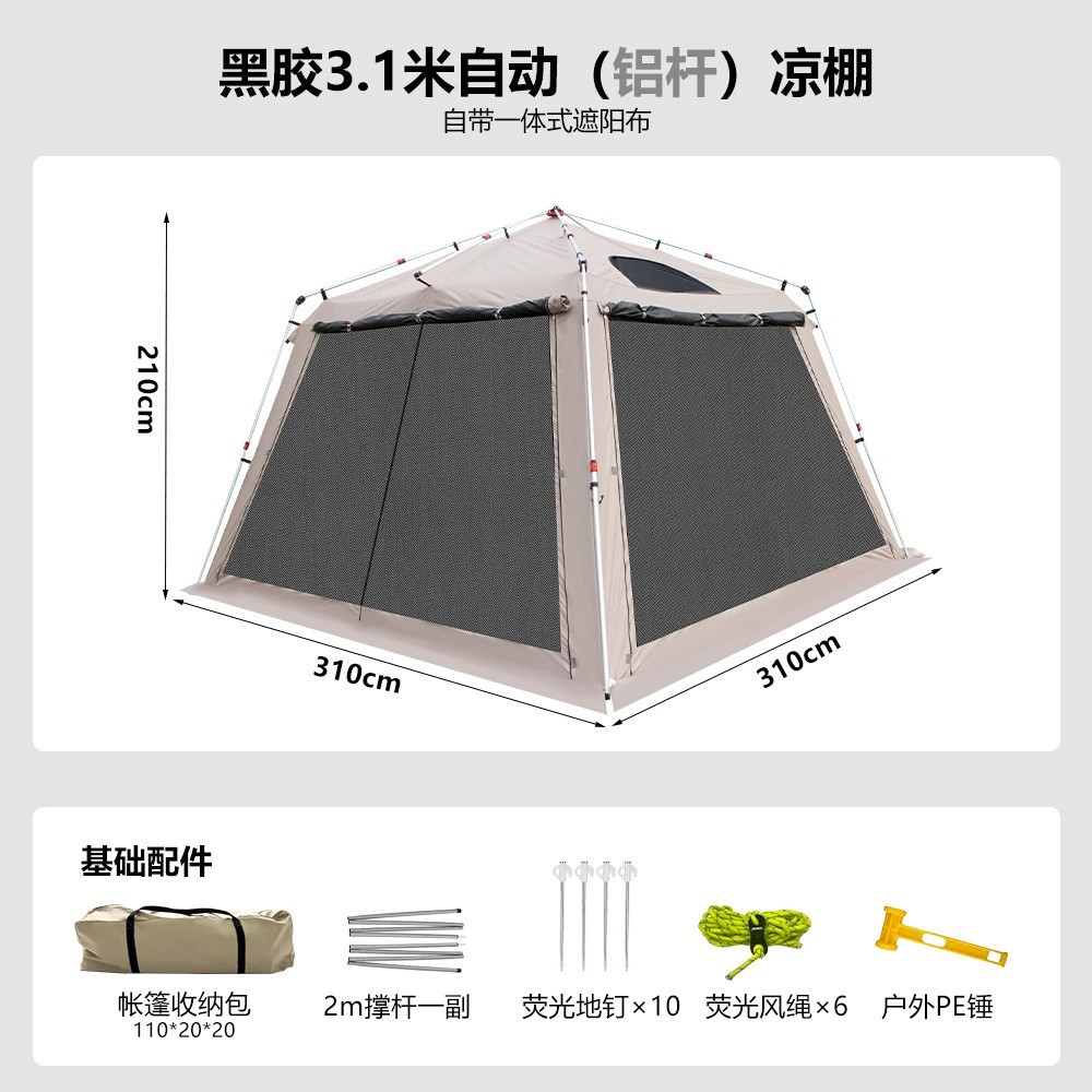 야외 큰 텐트 1 실 4 홀 터널 캠핑 텐트 장비 룸 타입 하룻밤 모기장 설치-무료