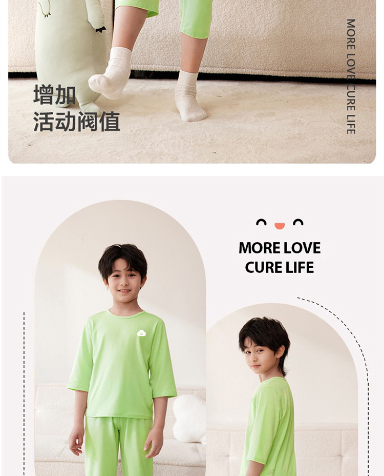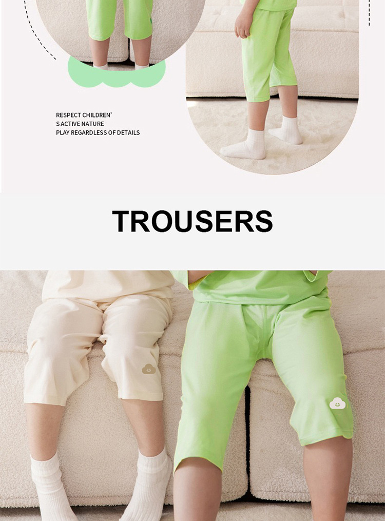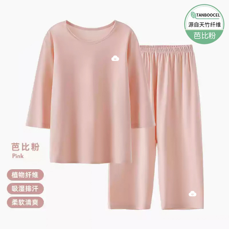 어린이 집 옷 Tianzhu 어린이 잠옷 여름 얇은 집 옷 여아 에어컨 옷 큰 어린이 7 점 소매