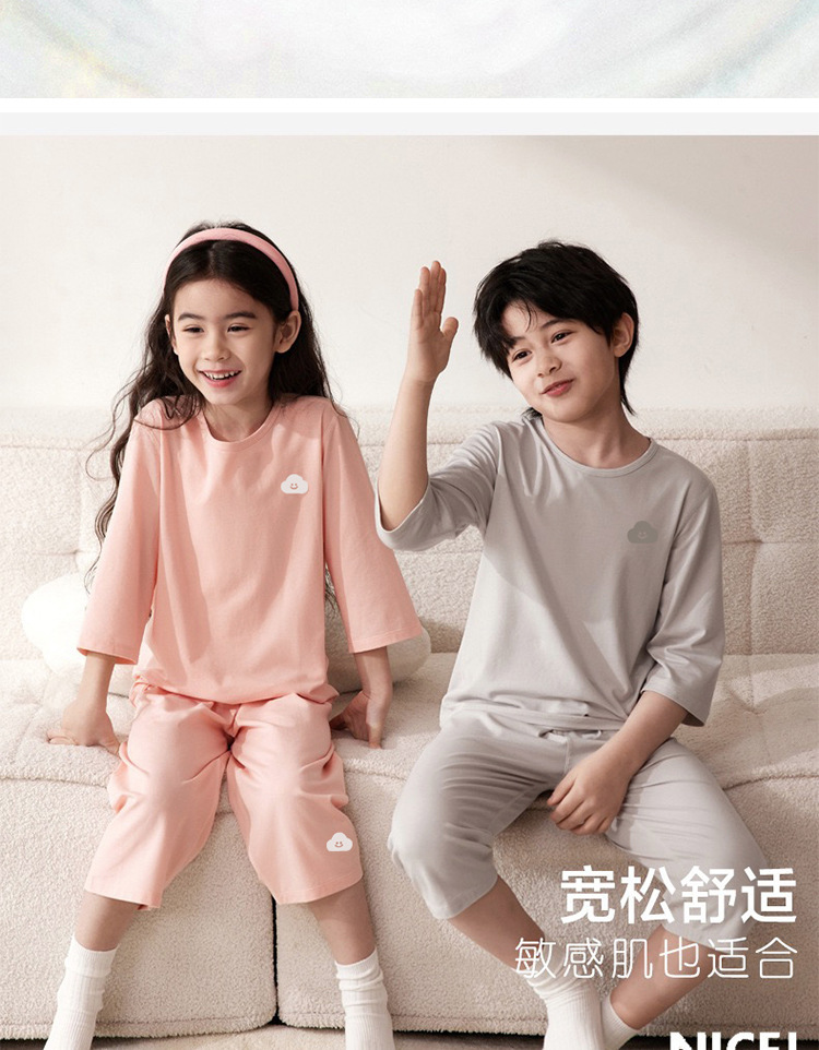 어린이 집 옷 Tianzhu 어린이 잠옷 여름 얇은 집 옷 여아 에어컨 옷 큰 어린이 7 점 소매스토어 가기