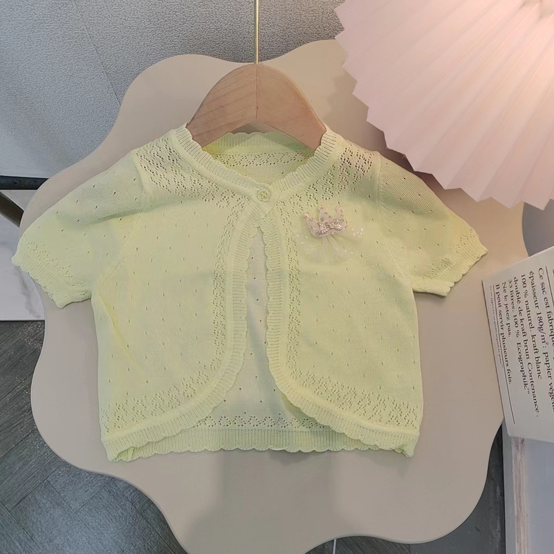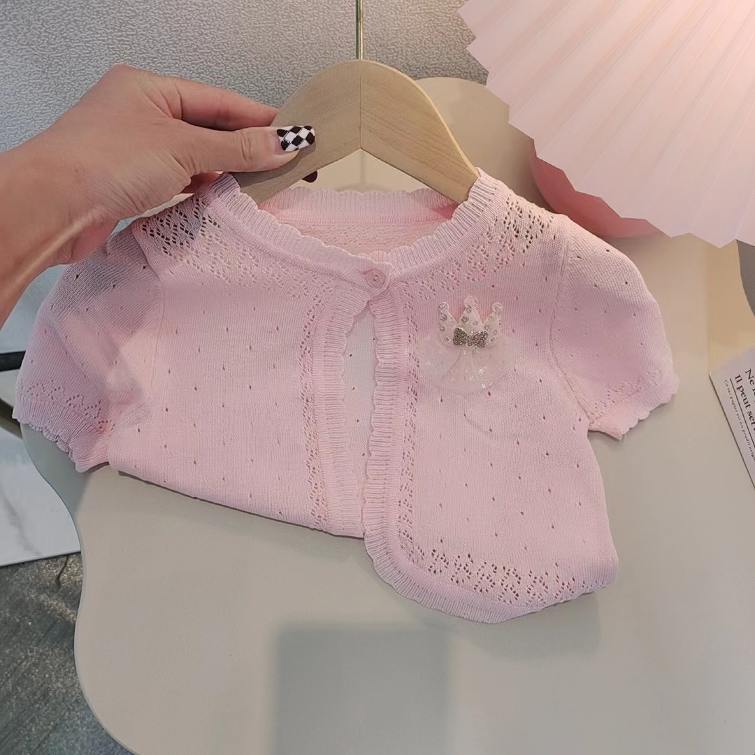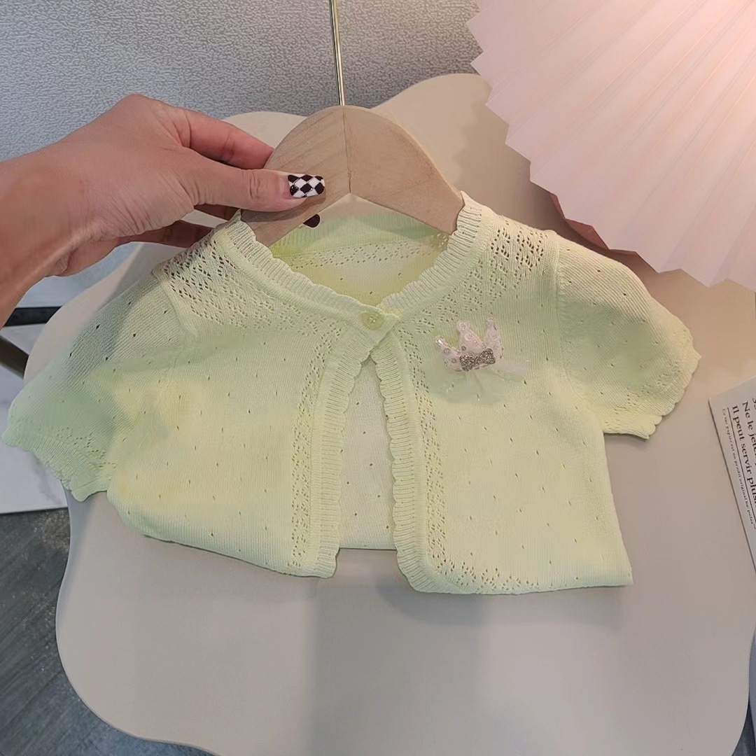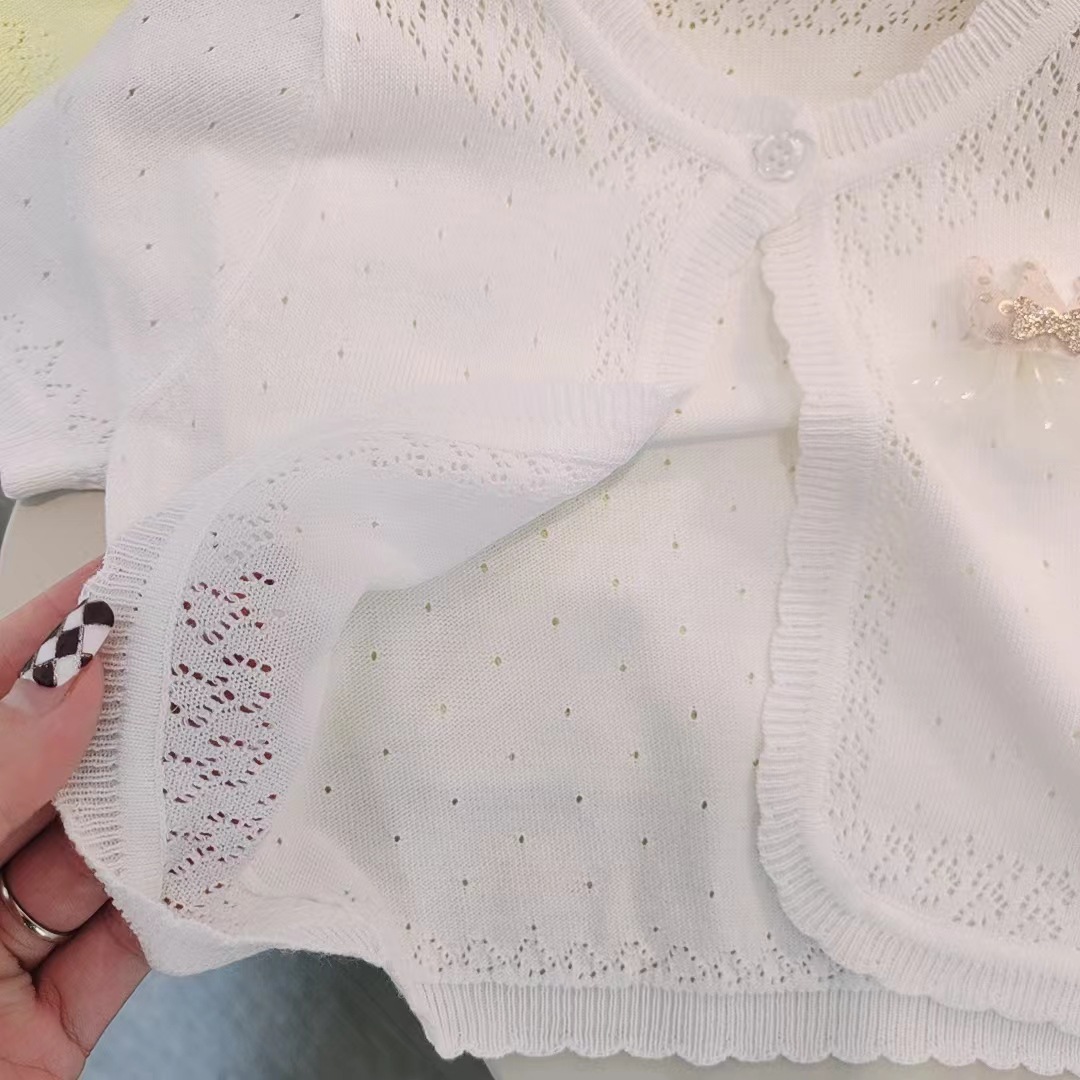 소녀 목도리 여름 어린이 에어컨 아이스 실크 얇은 코트 아기의 니트 카디건 반팔 아기의 중공 스웨터