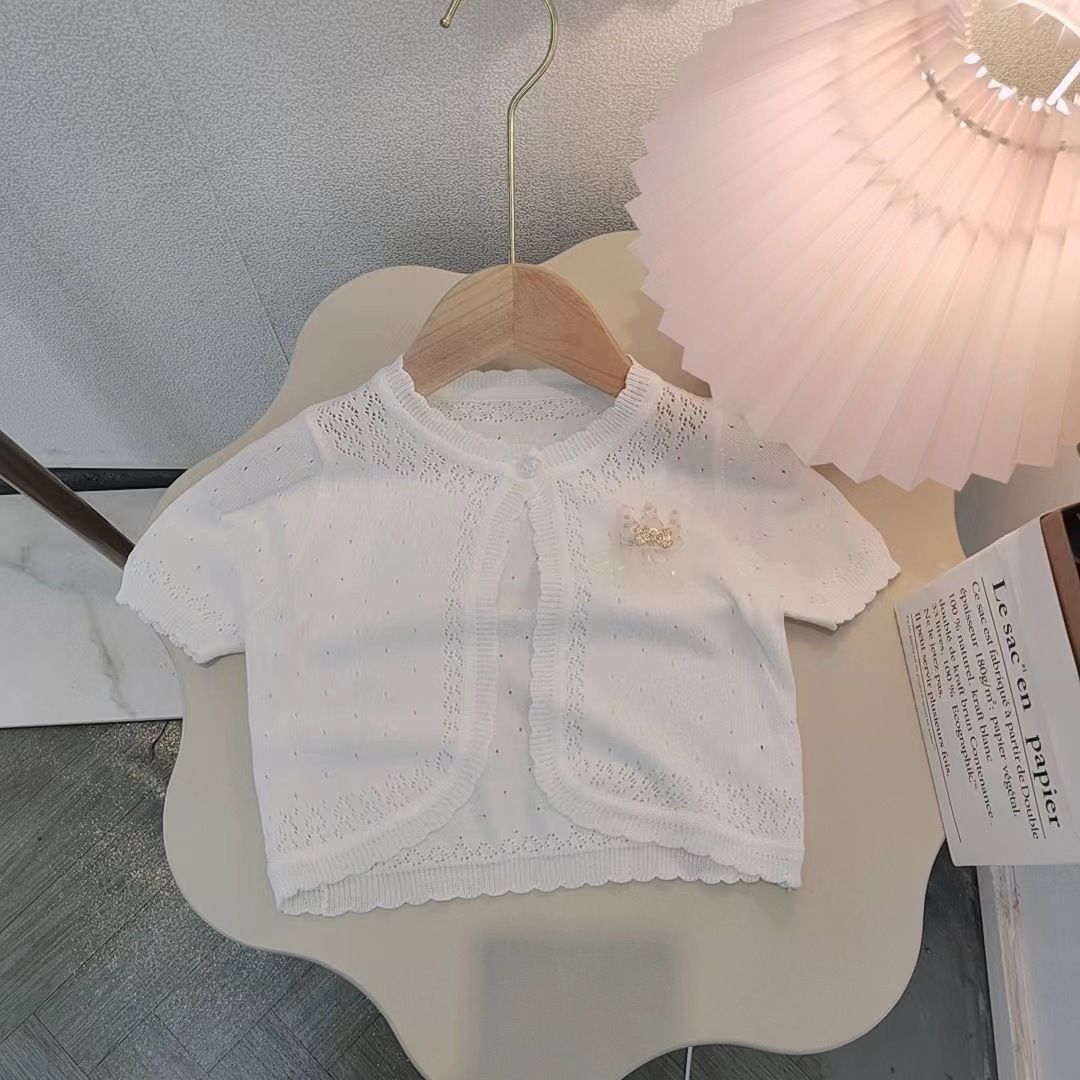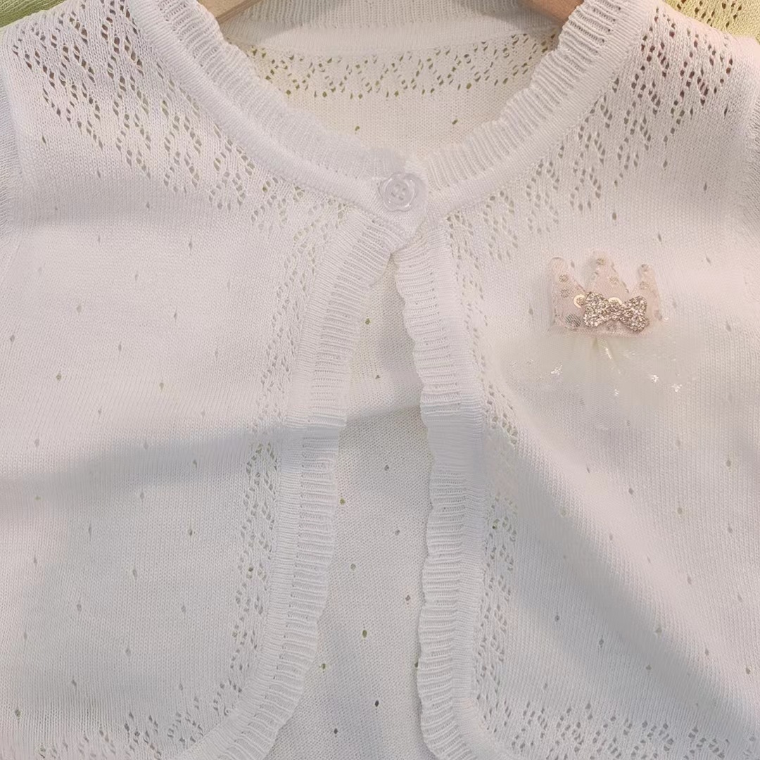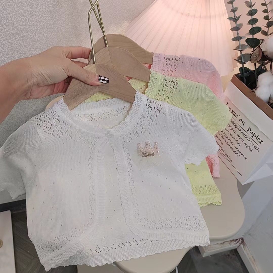 소녀 목도리 여름 어린이 에어컨 아이스 실크 얇은 코트 아기의 니트 카디건 반팔 아기의 중공 스웨터