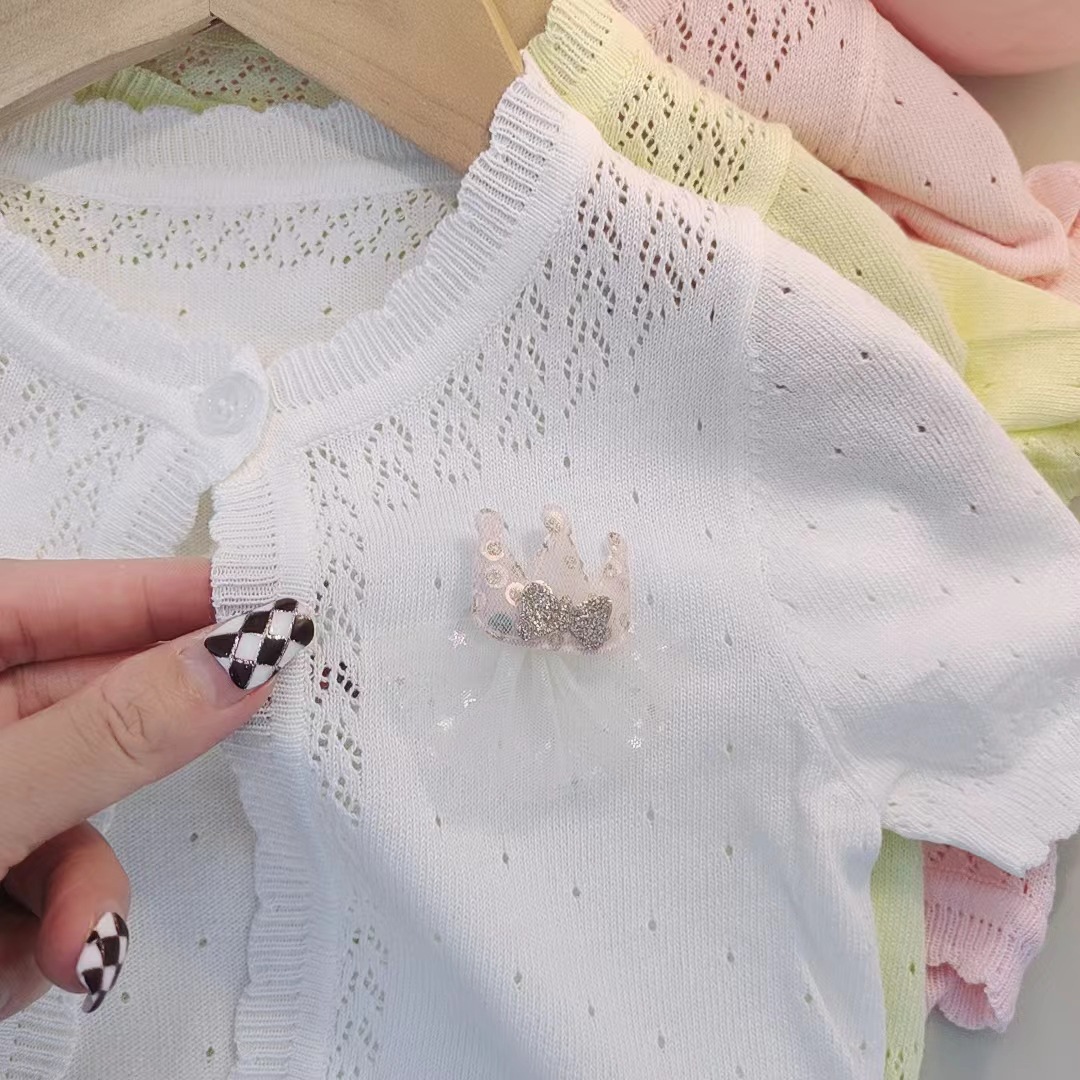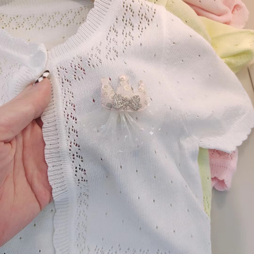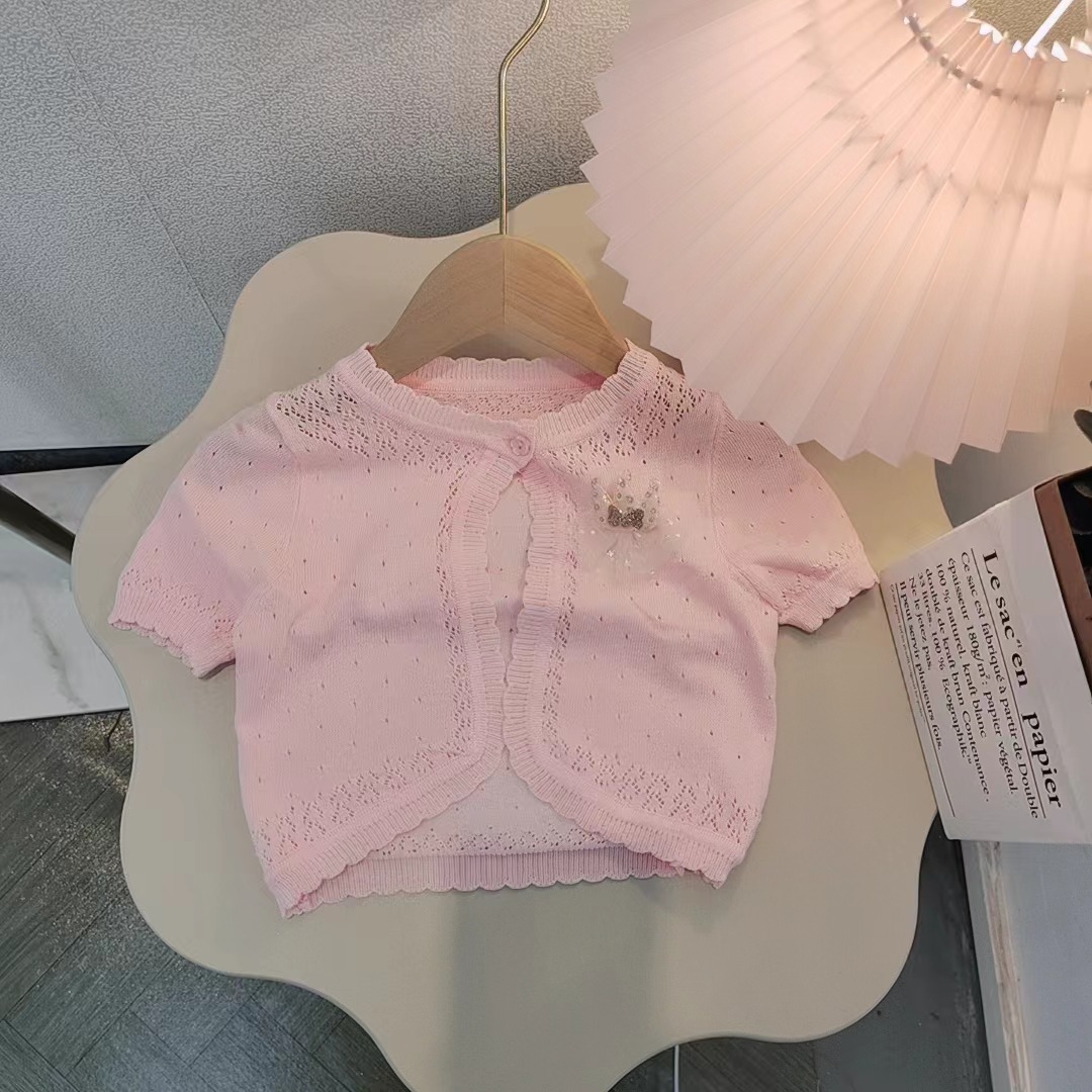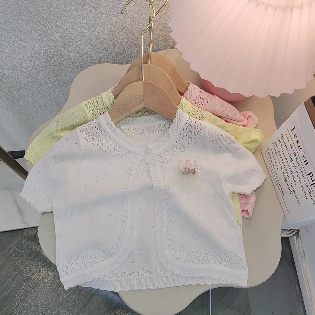 소녀 목도리 여름 어린이 에어컨 아이스 실크 얇은 코트 아기의 니트 카디건 반팔 아기의 중공 스웨터