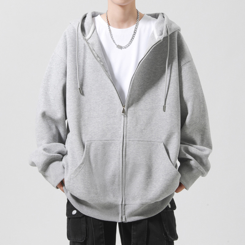 봄 가을 무거운 회색 후드 스웨터 소년 재킷 느슨한 커플 옷 새로운 미국 남성 카디건 재킷스토어 가기