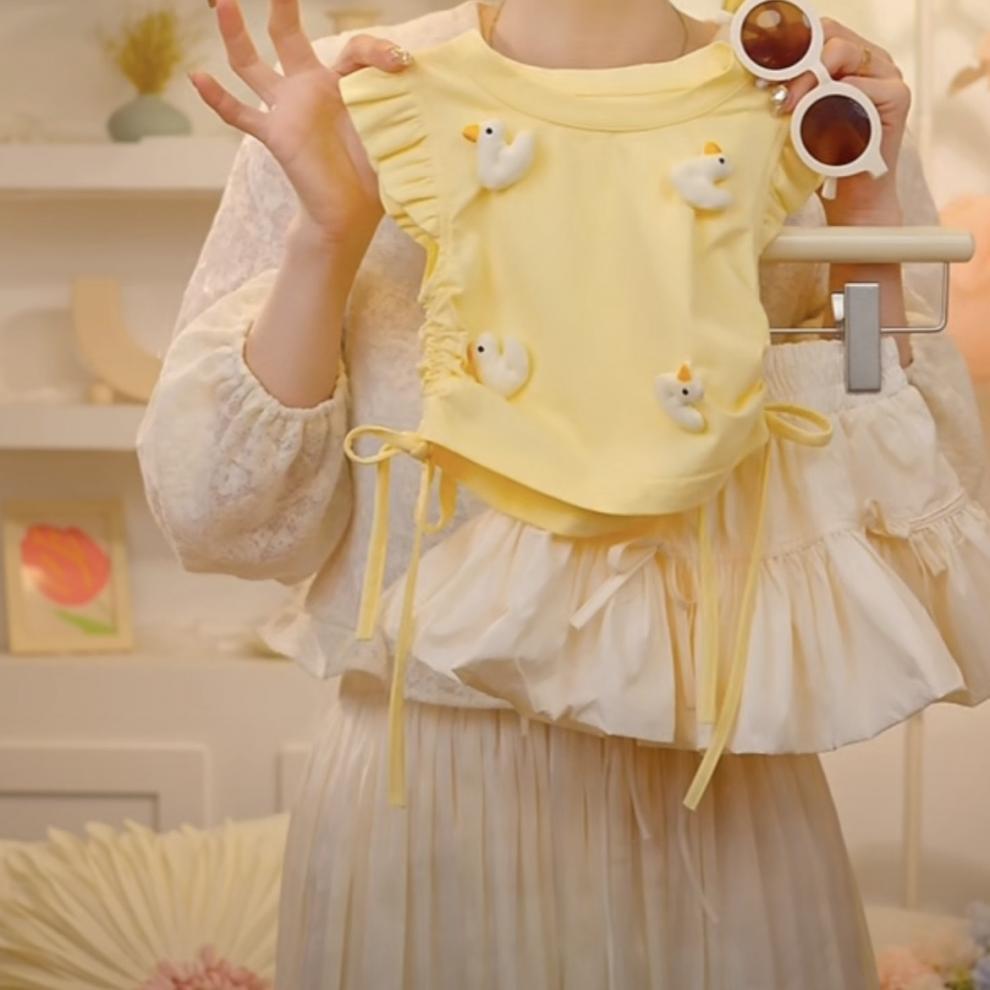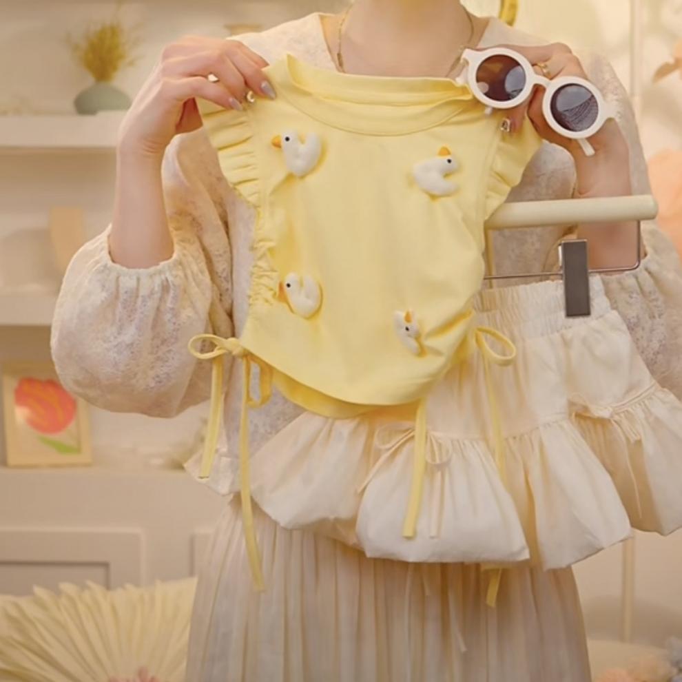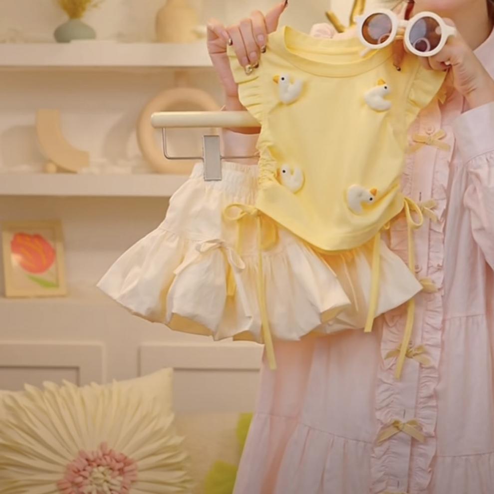 • [투피스세트] 리틀덕 + 탑 + 스커트팬츠