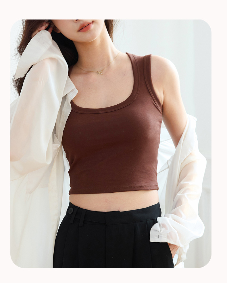 새로운 여자 브래킷 컵 올인원 Navel Bottoming Vest 간단한 슬림 핏 섹시한 짧은 브래지어 슬링