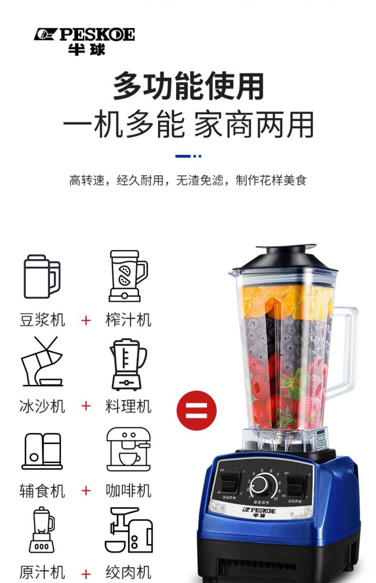 Peskoeb 반구 상업용 벽 속보 기계 고출력 모래 얼음 추출기 쥬서 자동 두유 기계 Dregs-무료 필터 재료