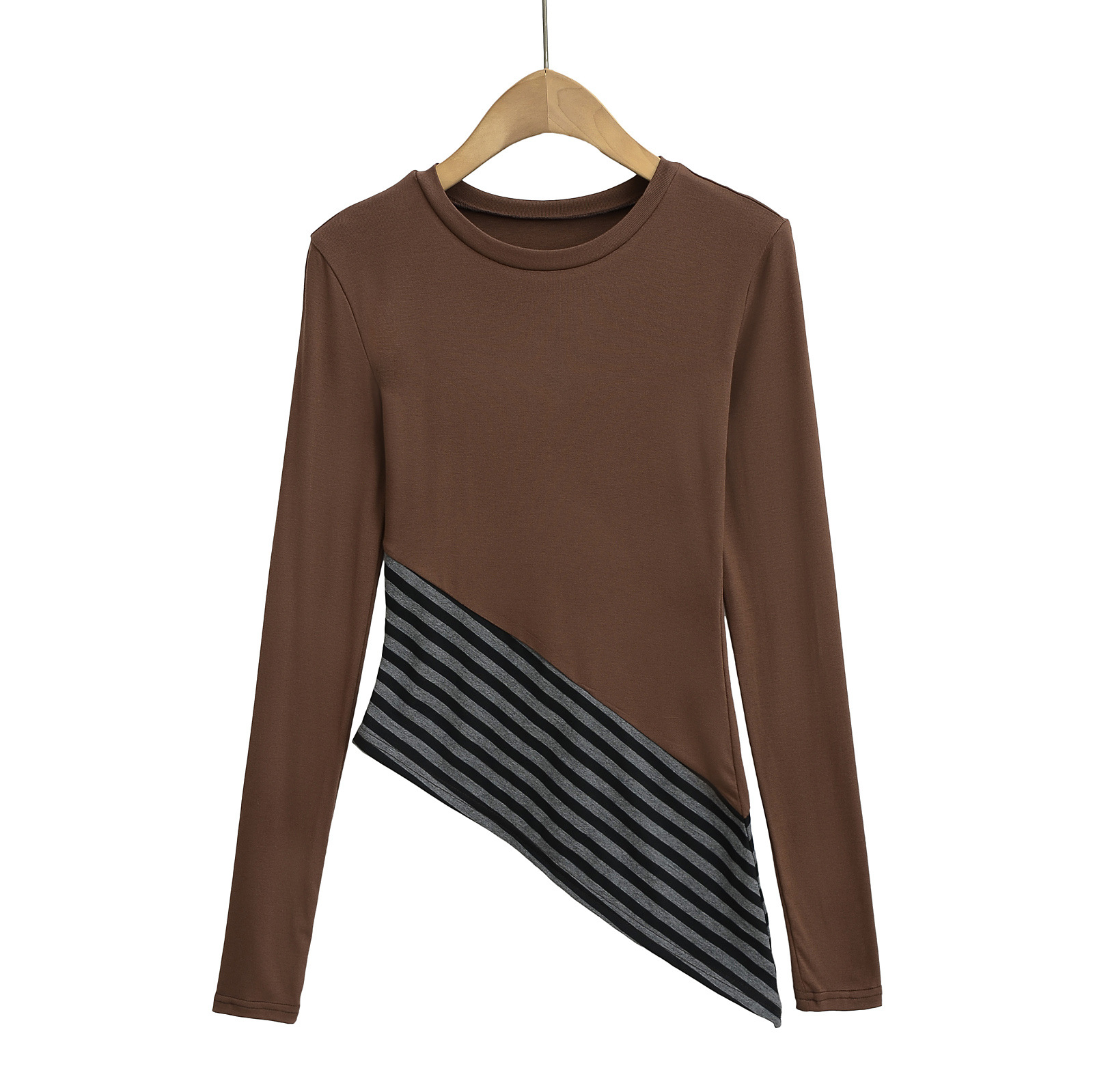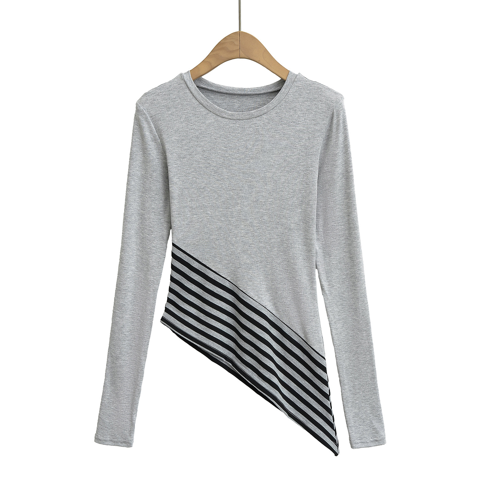 2502-2025 새로운 순수한 욕망 레저 크루 넥 재킷 여성 스트라이프 슬림 섹시한 슬랜트 헴 긴 소매 티셔츠스토어 가기