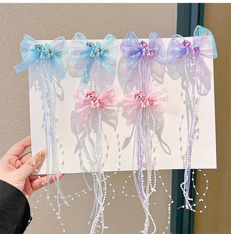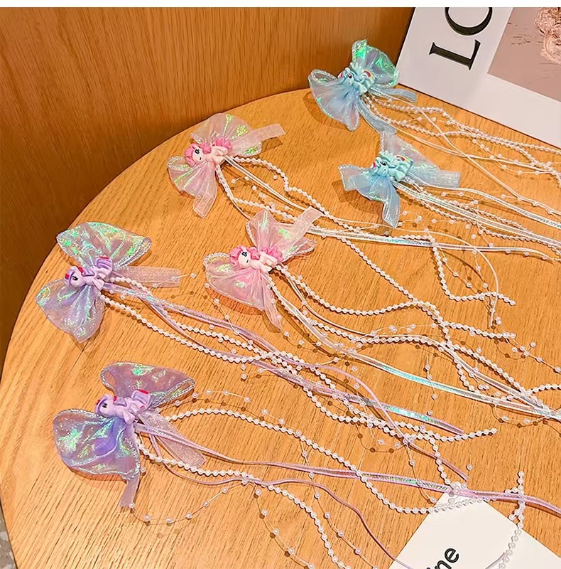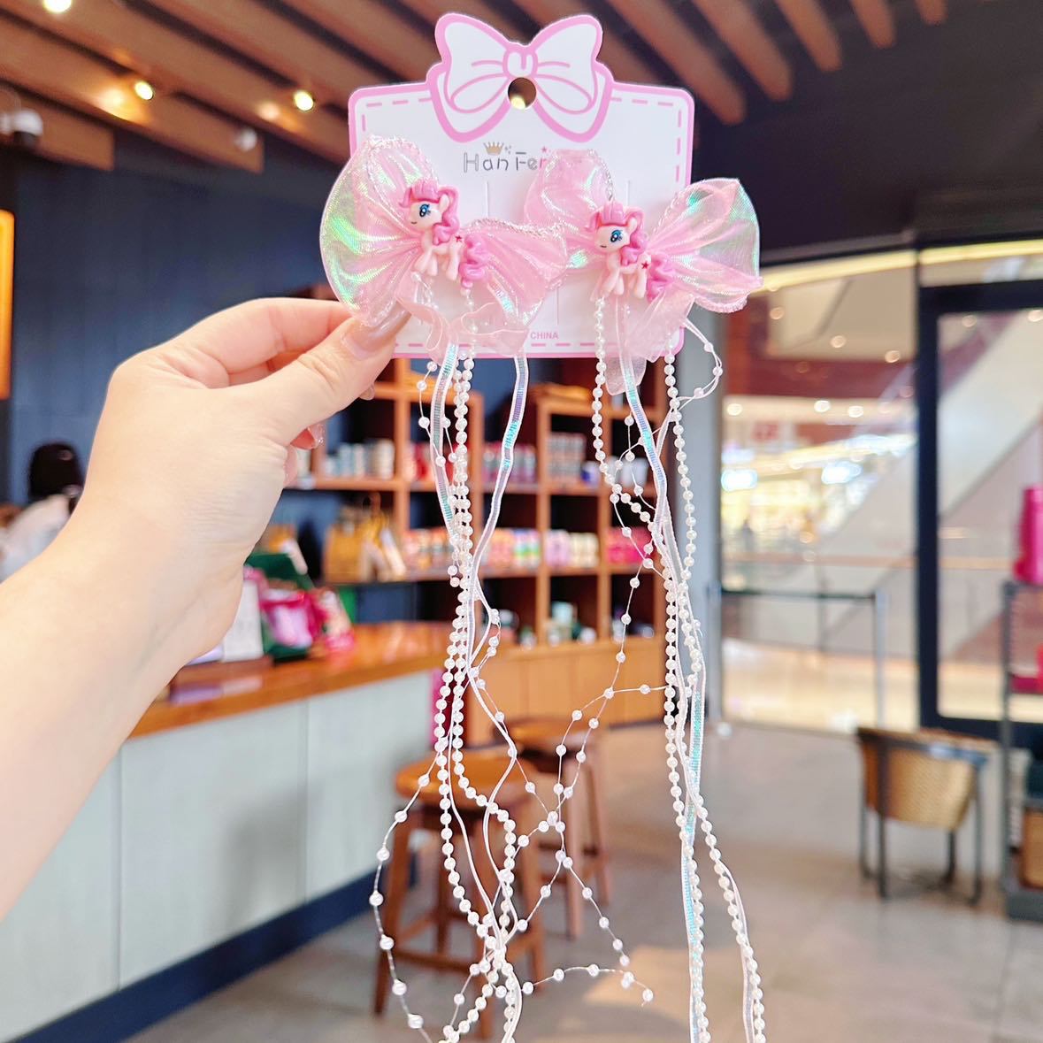 새로운 어린이 헤어핀 포니 진주 술 헤어 체인 웨이퍼 슈퍼 요정 달콤한 공주 활 여자 헤어 액세서리