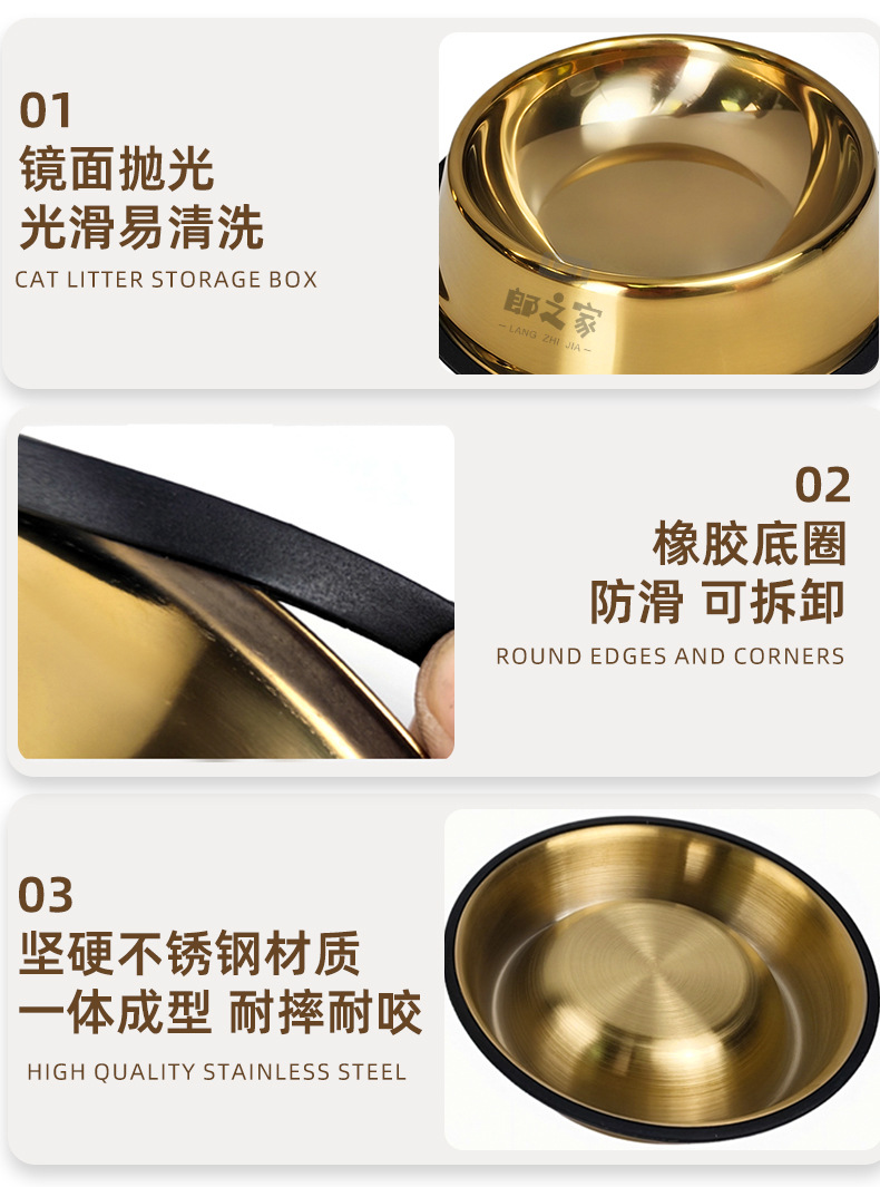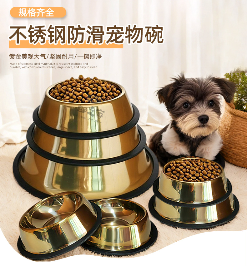 황금 스테인리스 개 분지 대형 개 식품 미끄럼 방지 노크 마시는 그릇 대용량 피더 도매스토어 가기