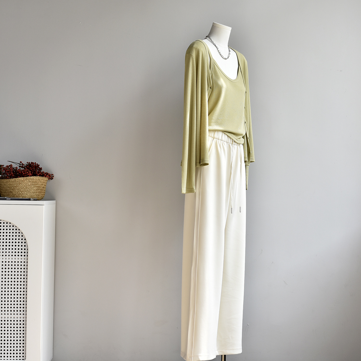 [수직 얇은 바지] 여성의 봄 25 새로운 얇은 수직 플러스 사이즈 좁은 판 스트레이트 다리 캐주얼 여성용 긴 바지