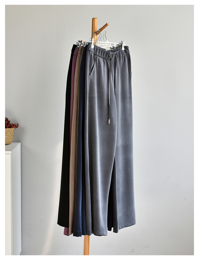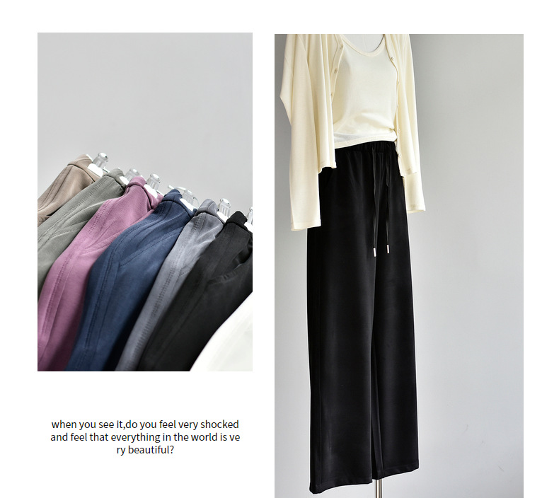 [수직 얇은 바지] 여성의 봄 25 새로운 얇은 수직 플러스 사이즈 좁은 판 스트레이트 다리 캐주얼 여성용 긴 바지스토어 가기