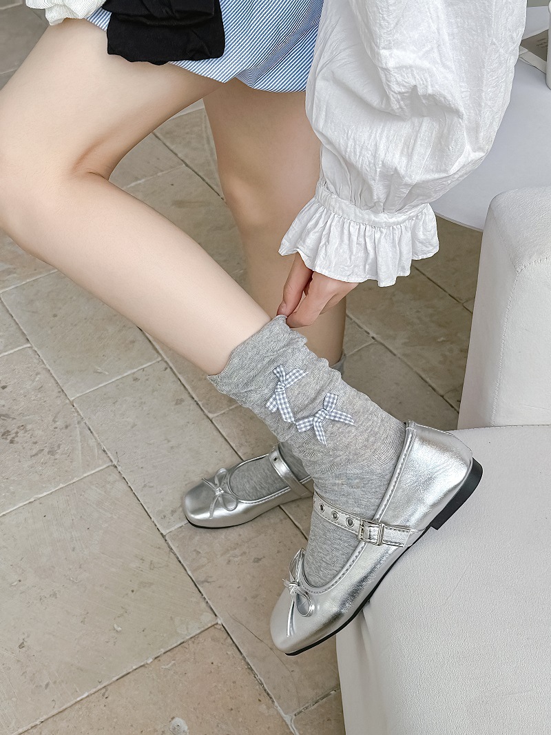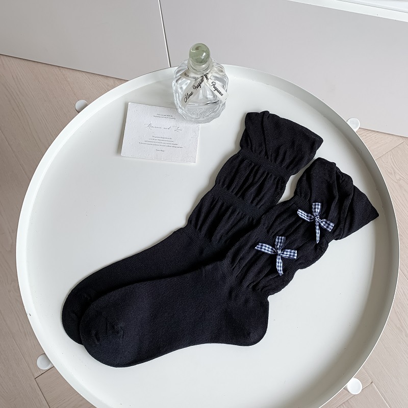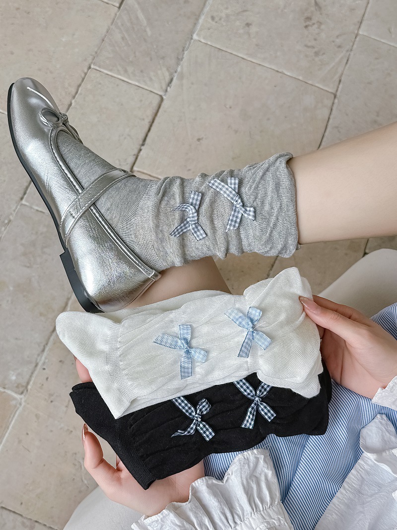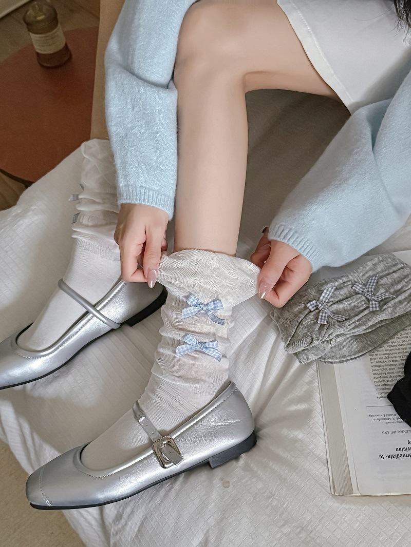 봄과 여름 얇은 발레 스타일 소녀의 여러 활 꼬인 스타킹 로리타 귀여운 버블 입 미드 튜브 양말