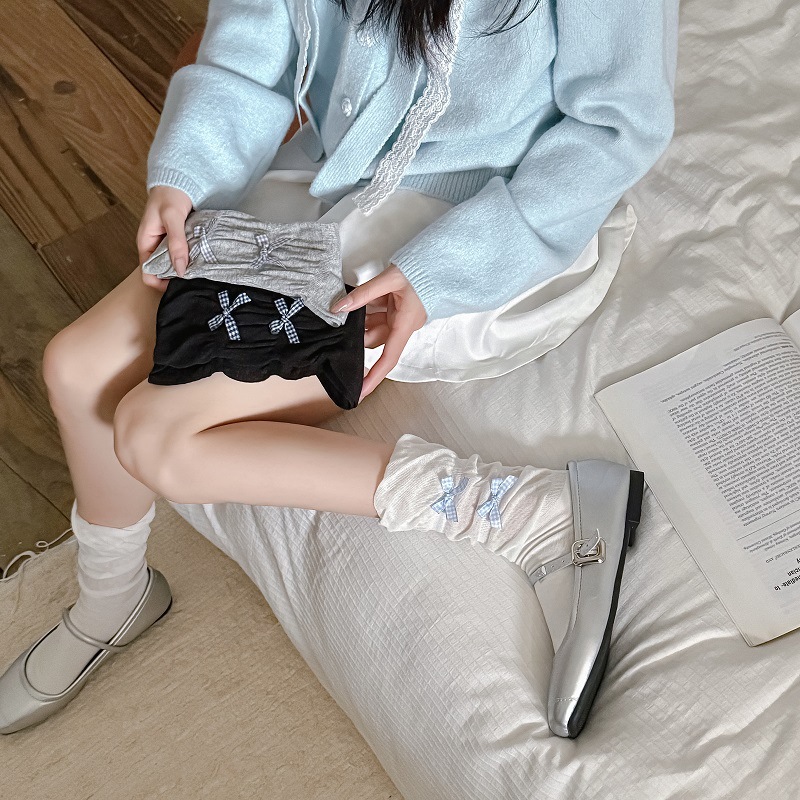 봄과 여름 얇은 발레 스타일 소녀의 여러 활 꼬인 스타킹 로리타 귀여운 버블 입 미드 튜브 양말스토어 가기