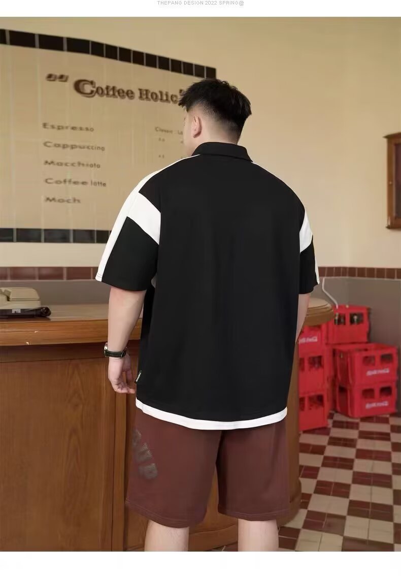 여름 새 남자 플러스 사이즈 폴로 셔츠 느슨한 캐주얼 올 매치 매일 흑백 컬러 매칭 가짜 투피스 옷깃 반팔스토어 가기