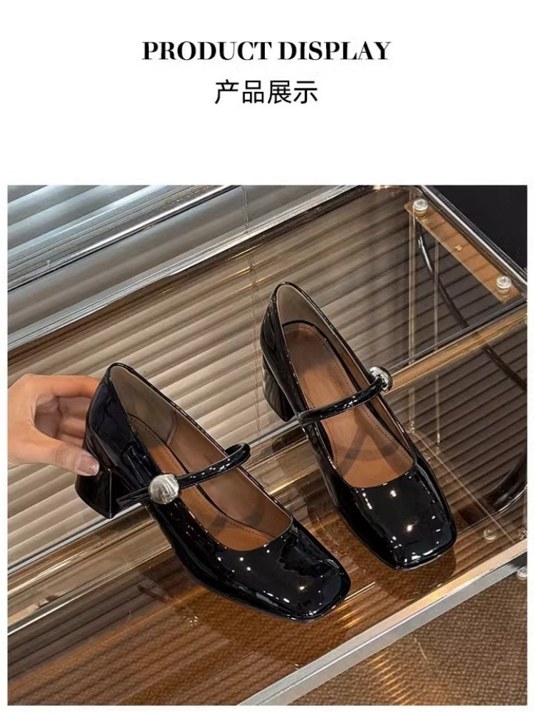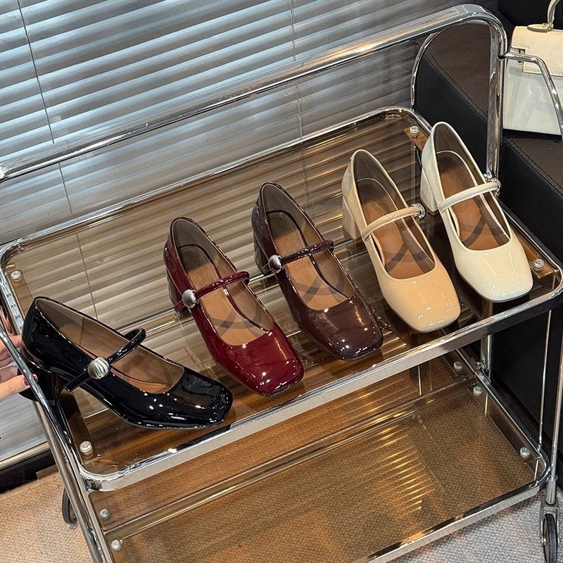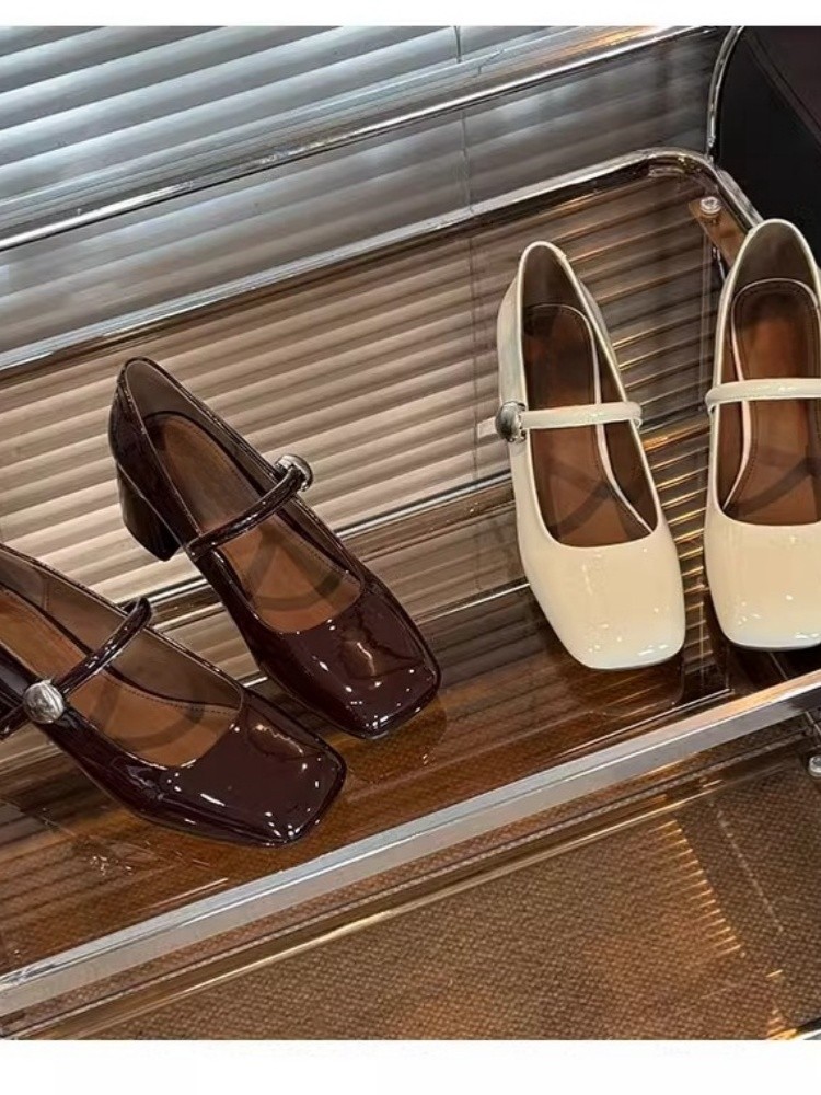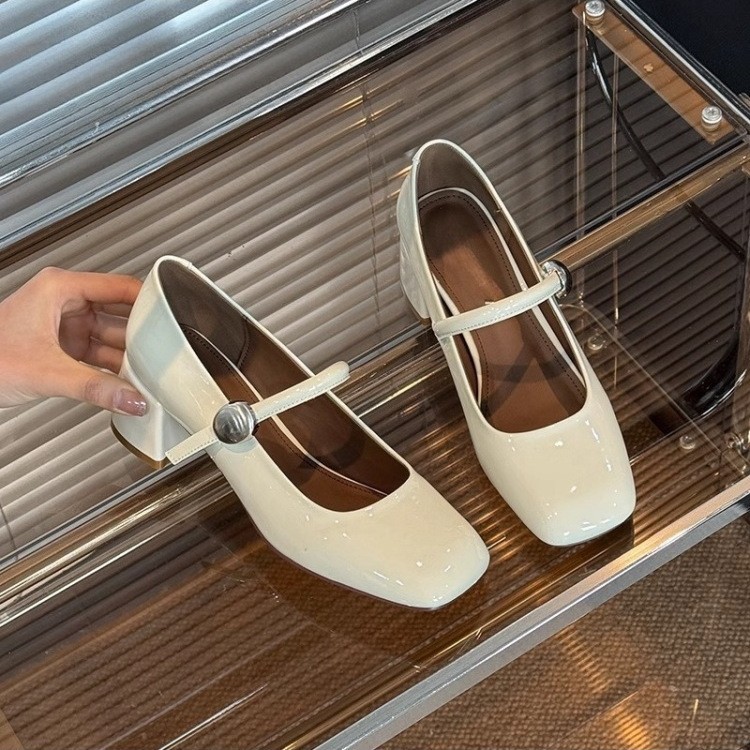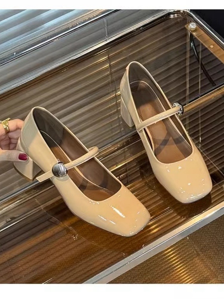 봄과 여름 2025 새로운 한국식 통근 스퀘어 헤드 요정 스타일 Mary Jane 프랑스 여성용 부드러운 두꺼운 뒤꿈치 신발