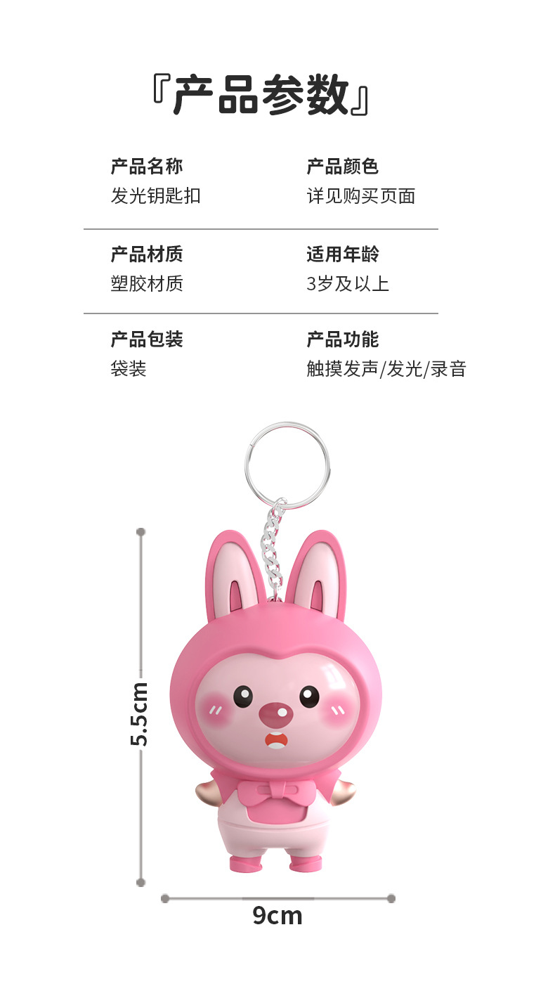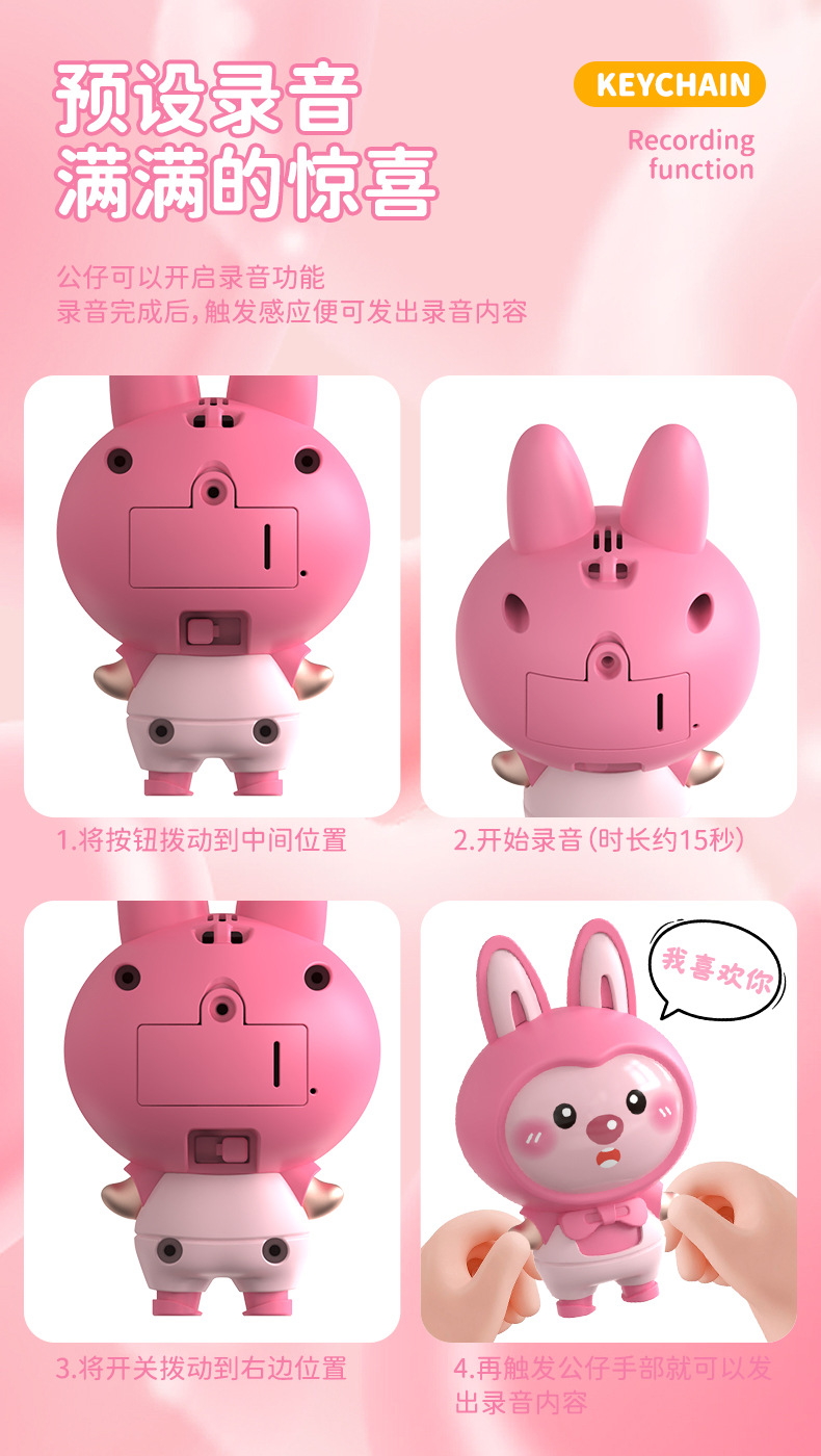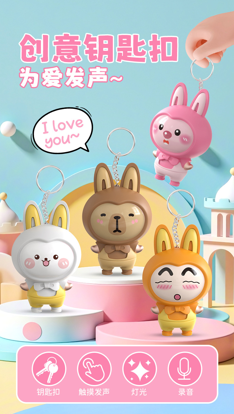 터치 유도 빛나는 사운드 녹음 가능한 만화 키 체인 유행 놀이 인형 펜던트 커플을위한 창조적 인 선물