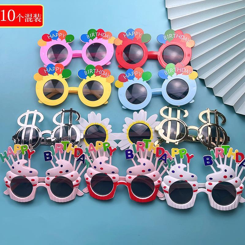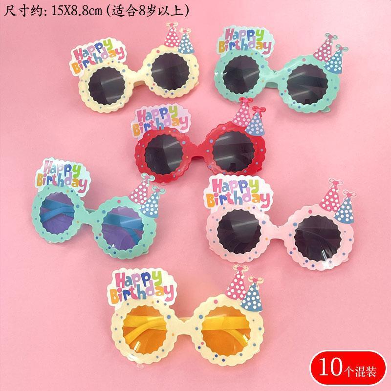 • 로즈 레드 생일 모자 안경 믹스 10개
