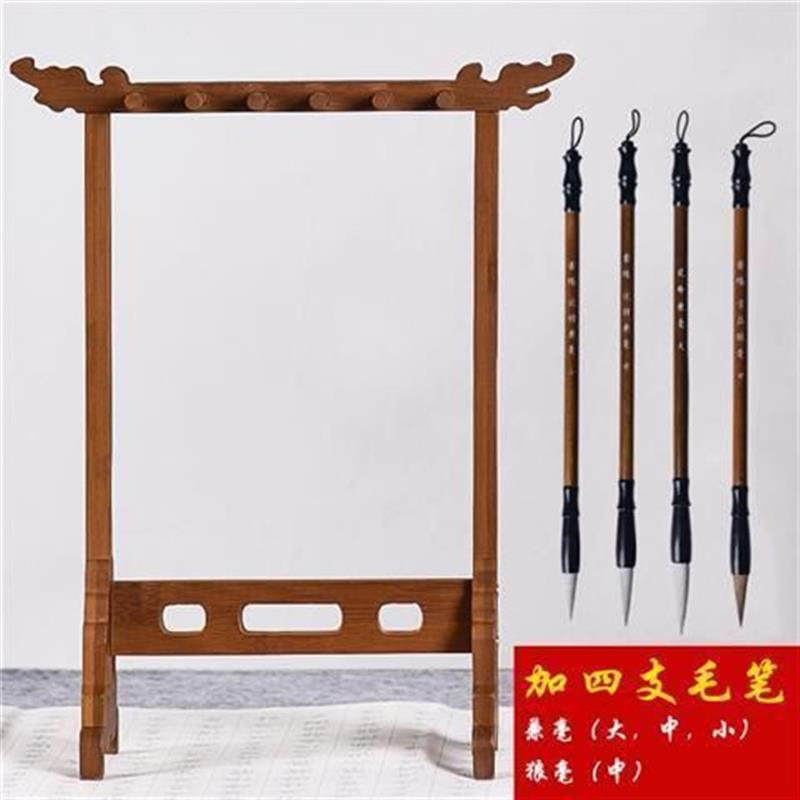 창조적 인 브러시 펜 데스크탑 스토리지 브러시 홀더를 가진 학생들을위한 연구 복고풍 단단한 나무 대나무 브러시 홀더의 4 가지 보물 보유