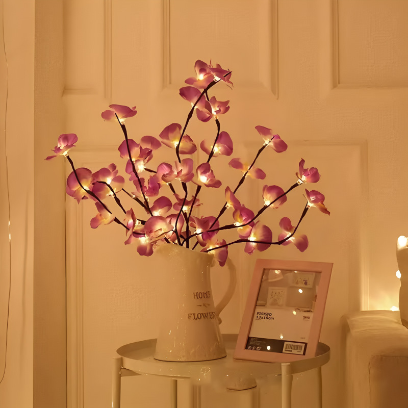 • 흰색과 보라색 호접란, 검은 가지 20등 핑크, 70cm, 배터리 버전