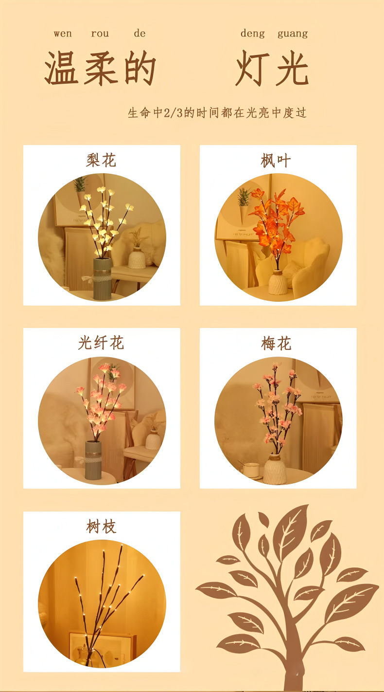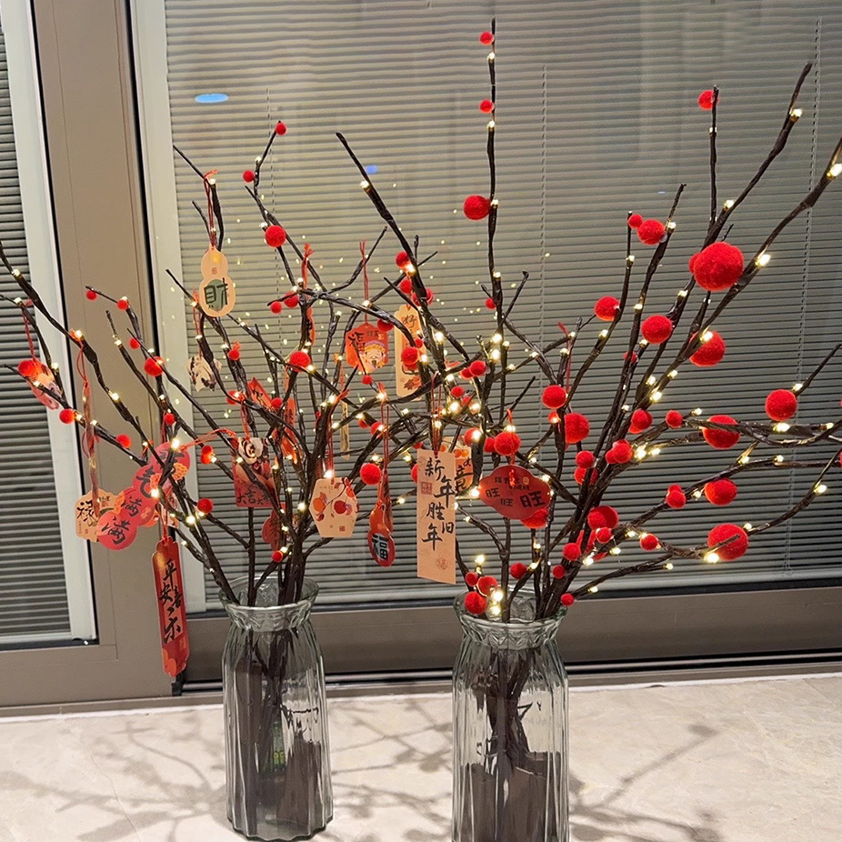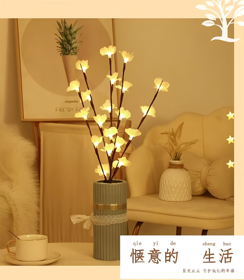 • 매화, 흰색 가지 20등 따뜻한 흰색, 70cm, 배터리 버전