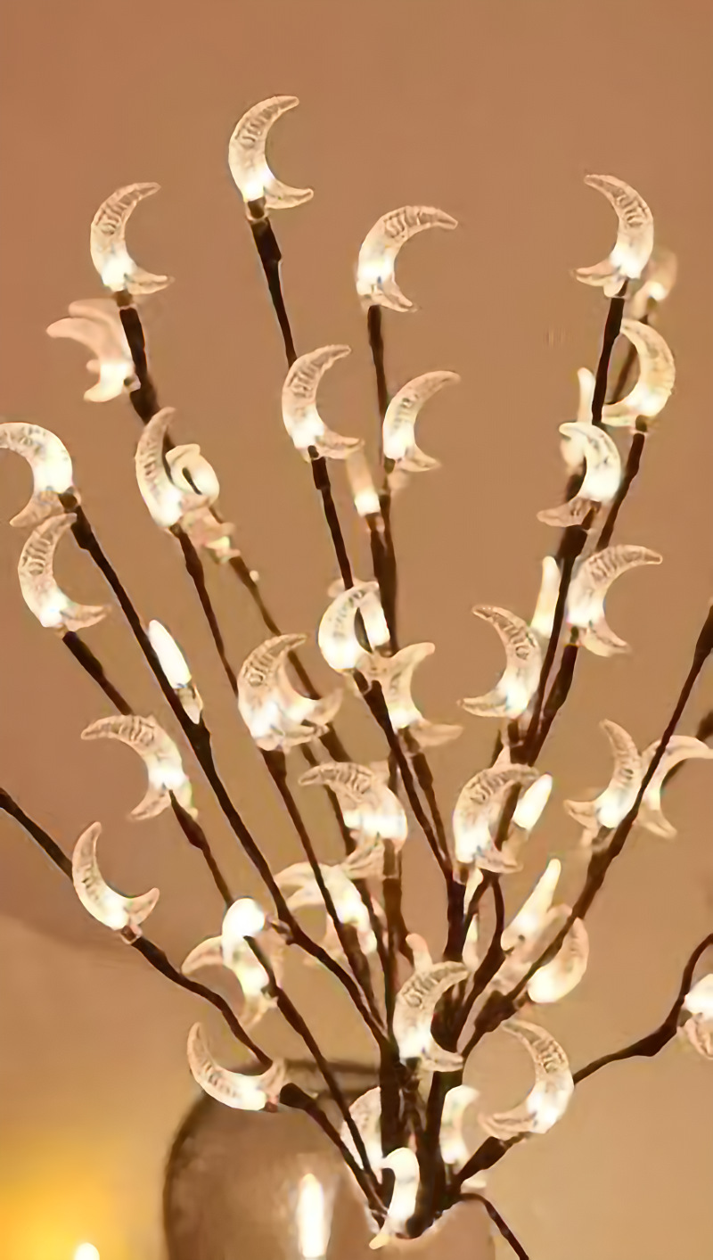 • 달; 검은 가지 20 등 따뜻한 흰색; 70cm; 배터리 버전