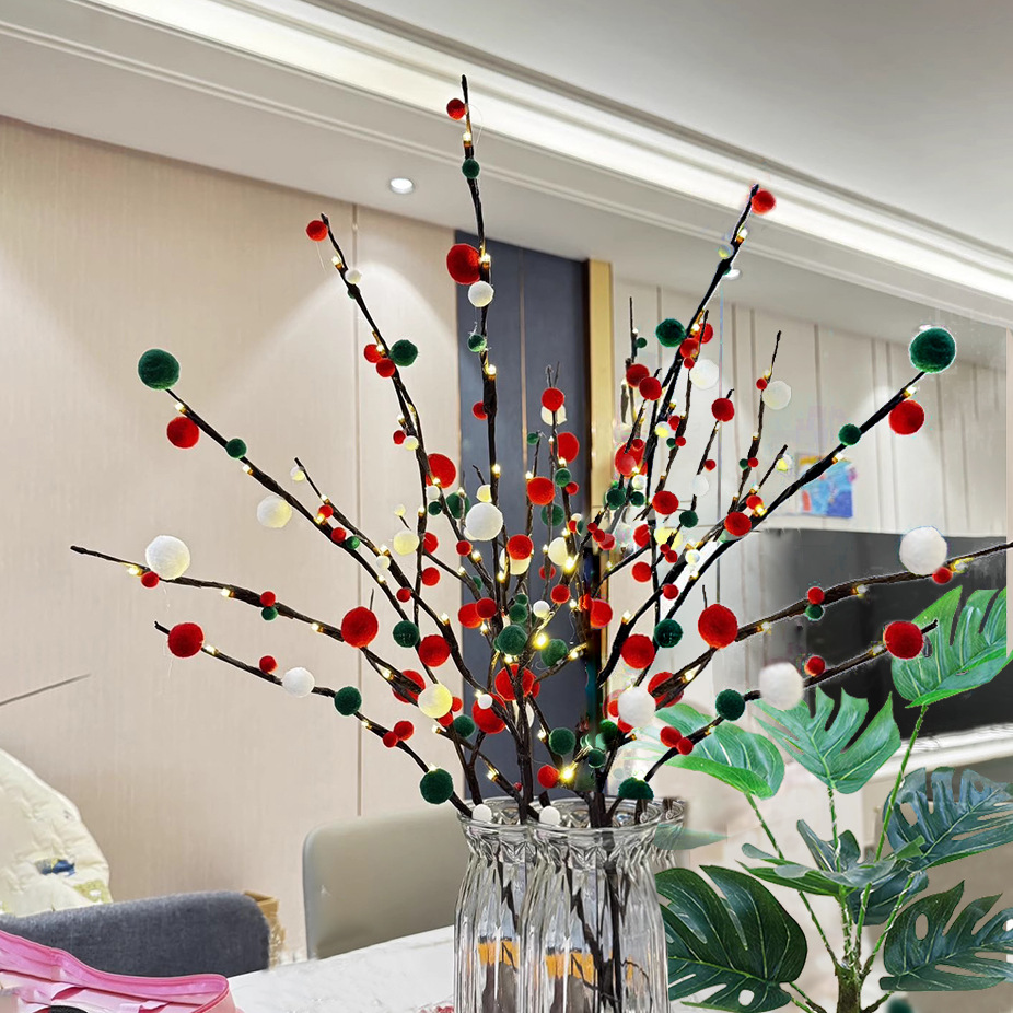 • 크리스마스 공 [맞춤형 필요], 검은 가지 20개의 밝은 색상, 70cm, 배터리 버전