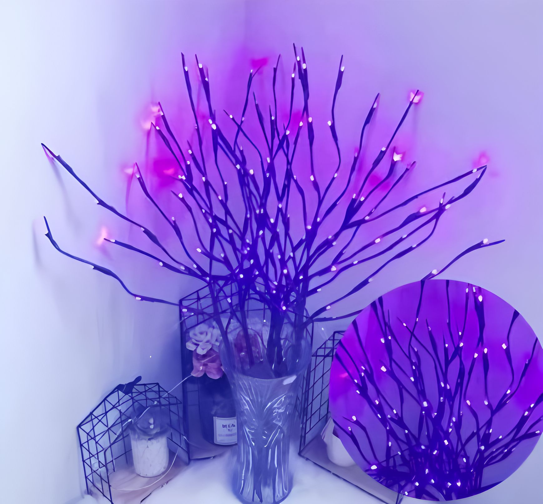 • 크리스마스 공 [맞춤형 필요], 검은 가지 20개, 보라색 조명, 70cm, 배터리 버전