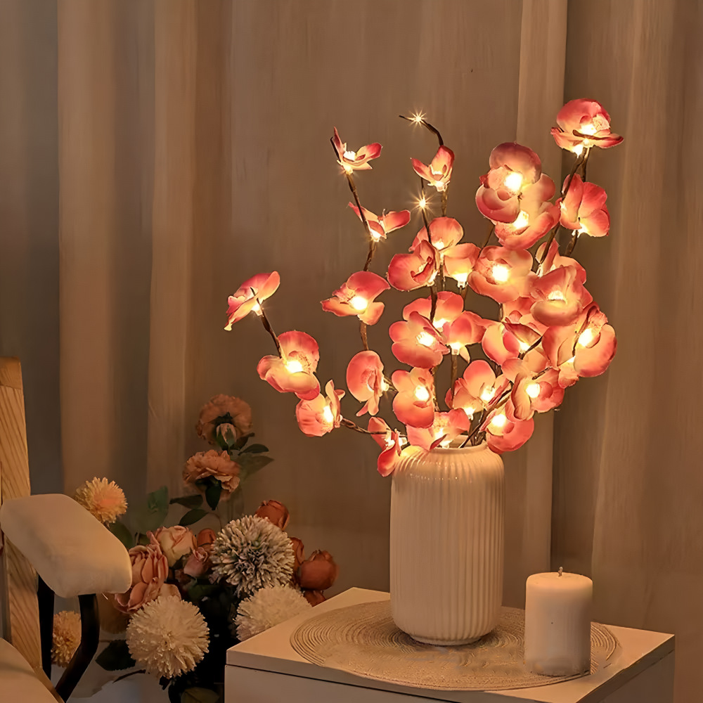 • 핑크 호접란, 흰색 가지 20등 따뜻한 흰색, 70cm, 배터리 버전