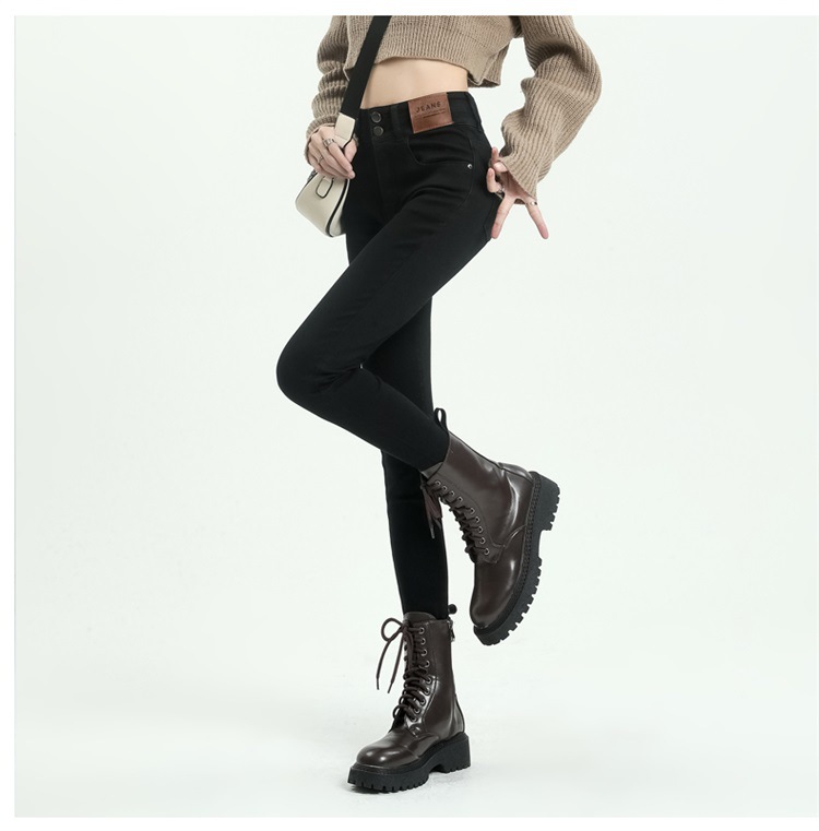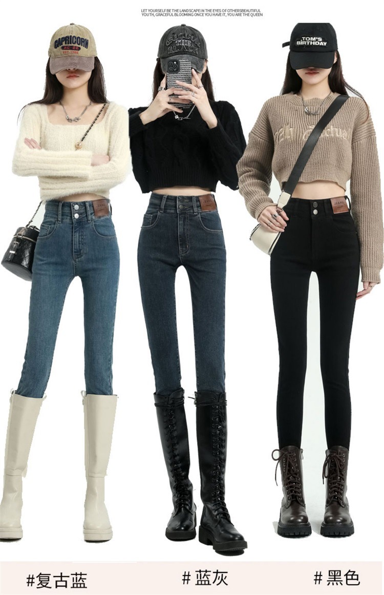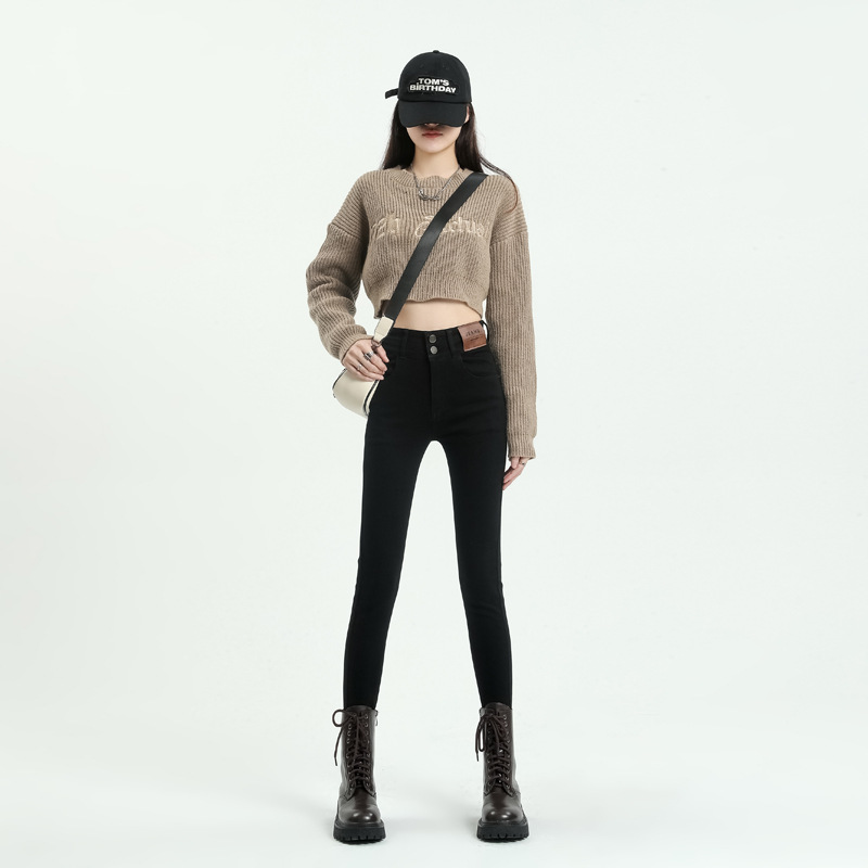 스키니 청바지 여성의 2025 새로운 폭발 검은 높은 허리 슬림 연필 바지 스키니 바지 봄과 가을스토어 가기