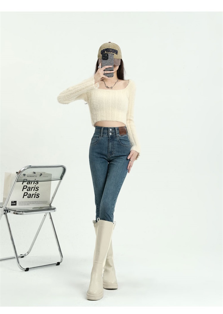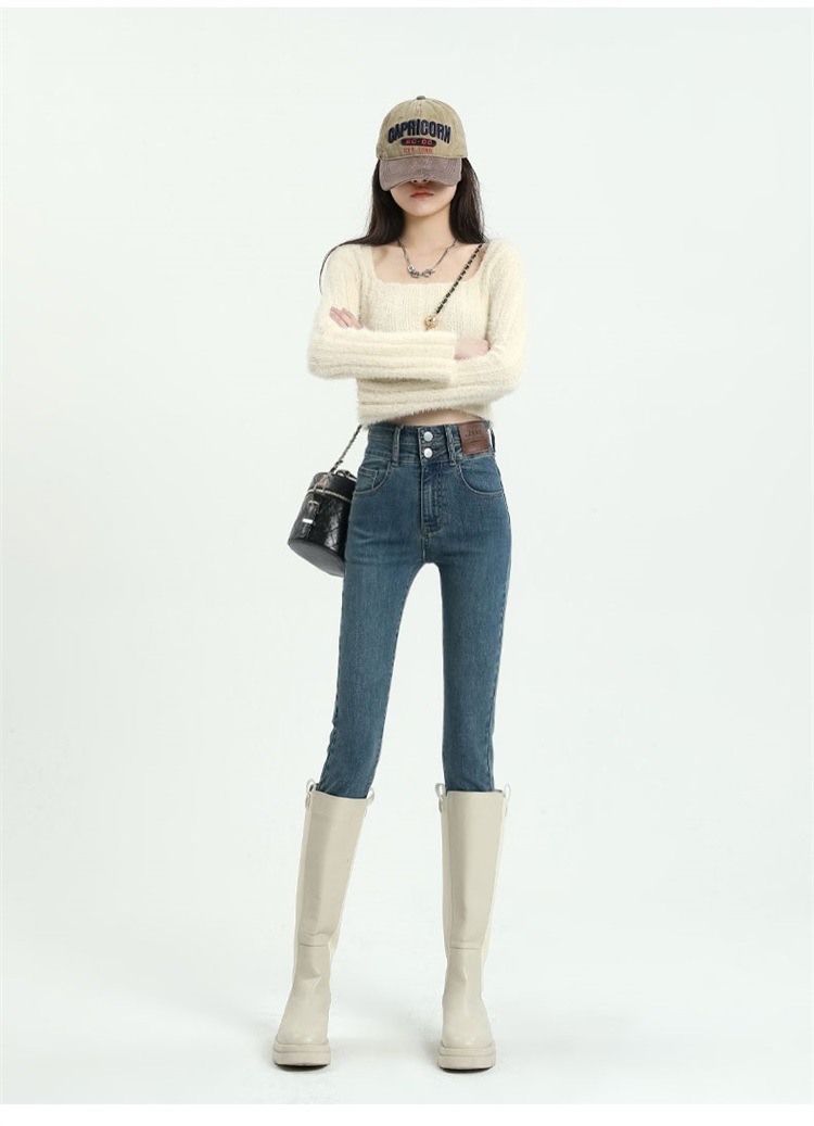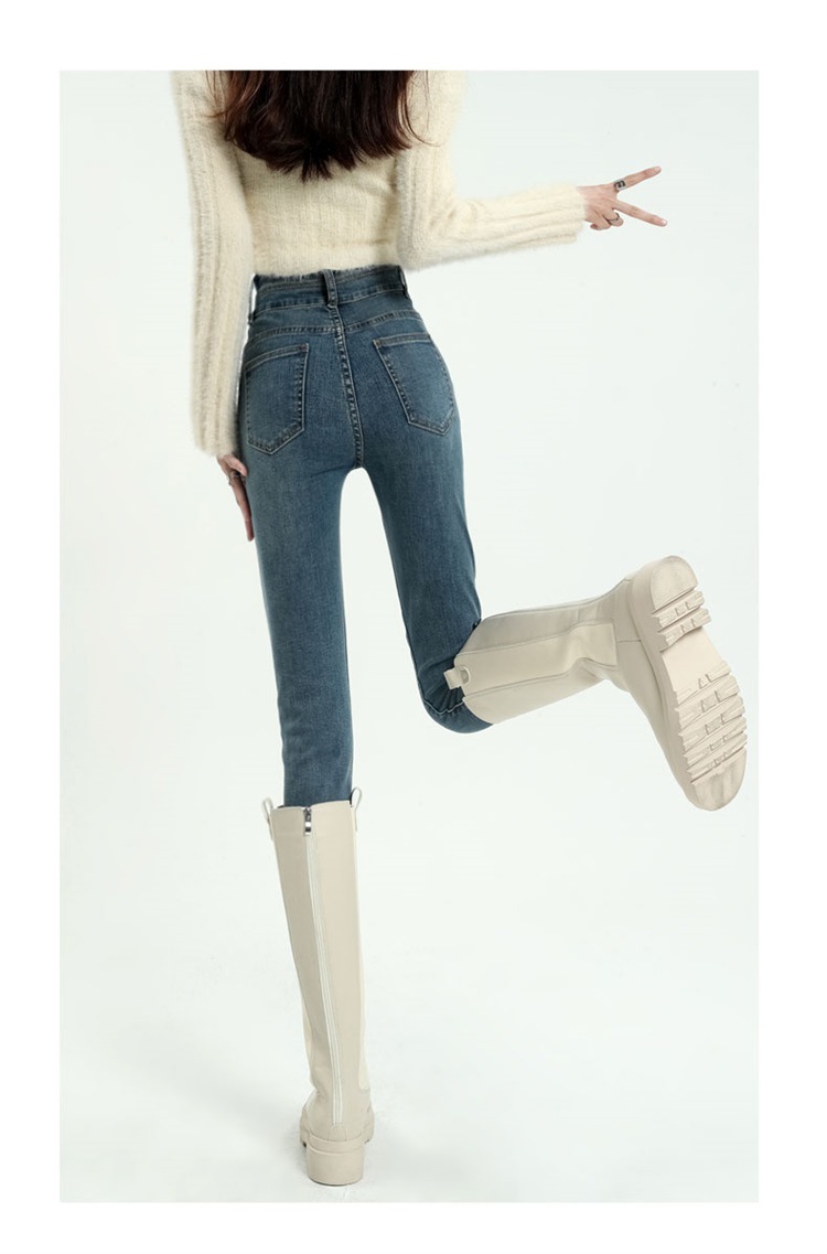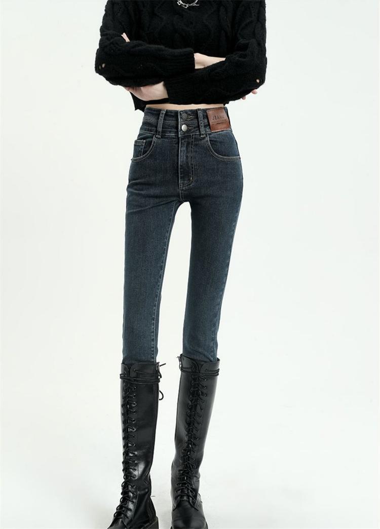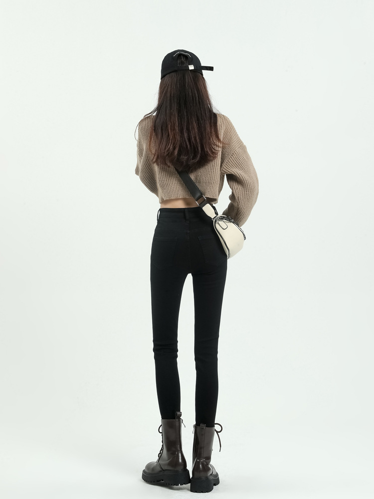 스키니 청바지 여성의 2025 새로운 폭발 검은 높은 허리 슬림 연필 바지 스키니 바지 봄과 가을