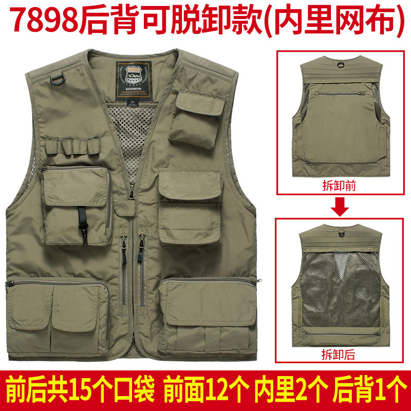 그룹 구매 맞춤형 인쇄 로고 조끼 남성 야외 멀티 포켓 낚시 사진 광고 플러스 사이즈 조끼 처리 세트스토어 가기