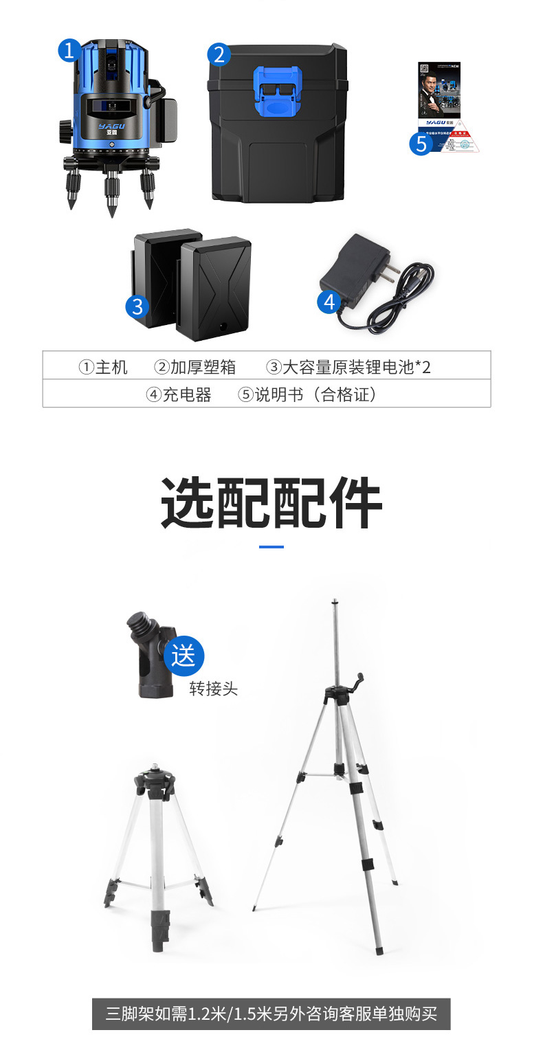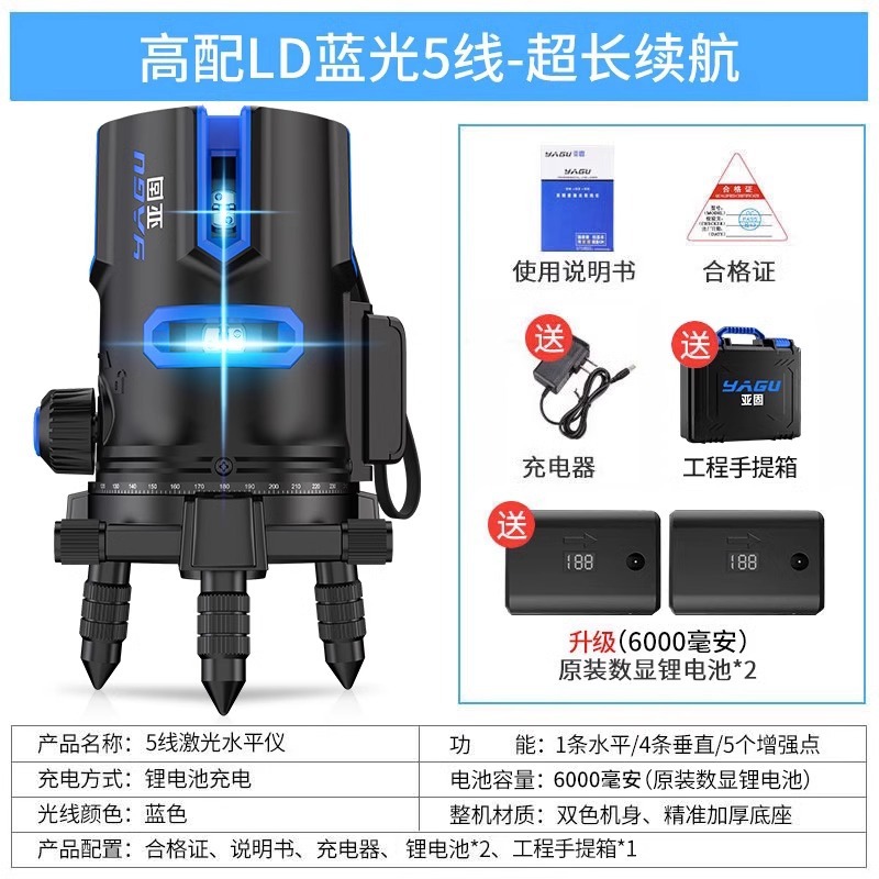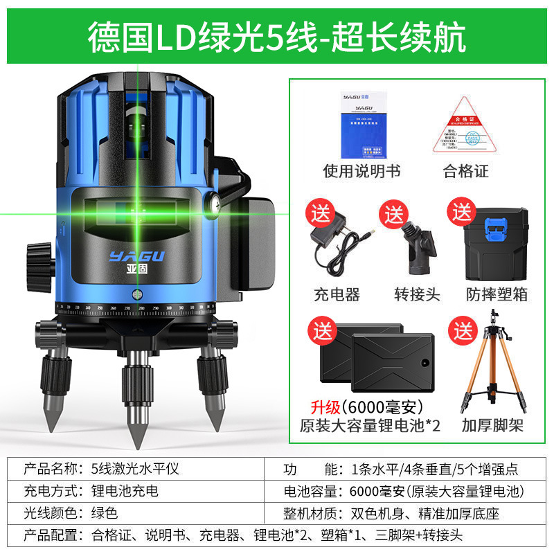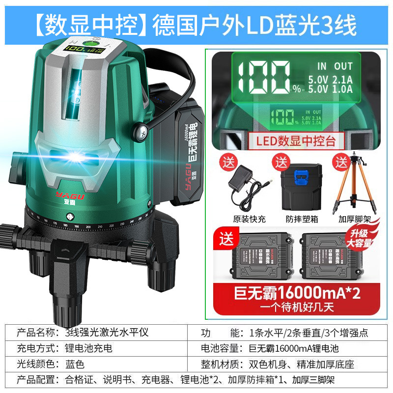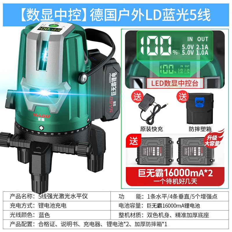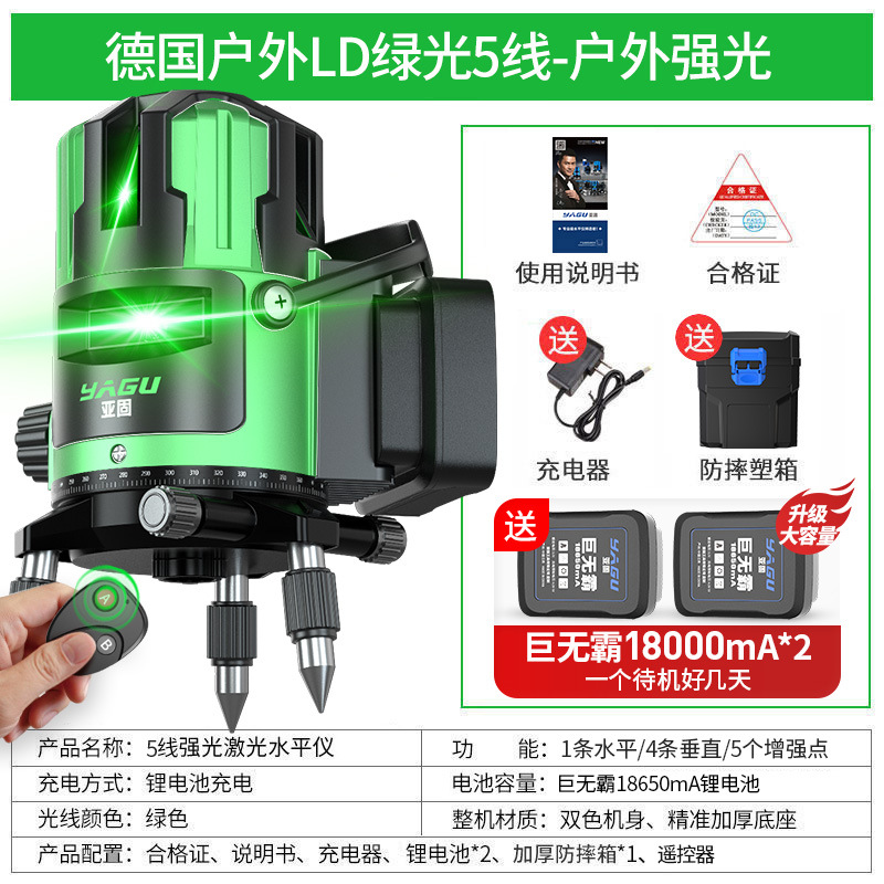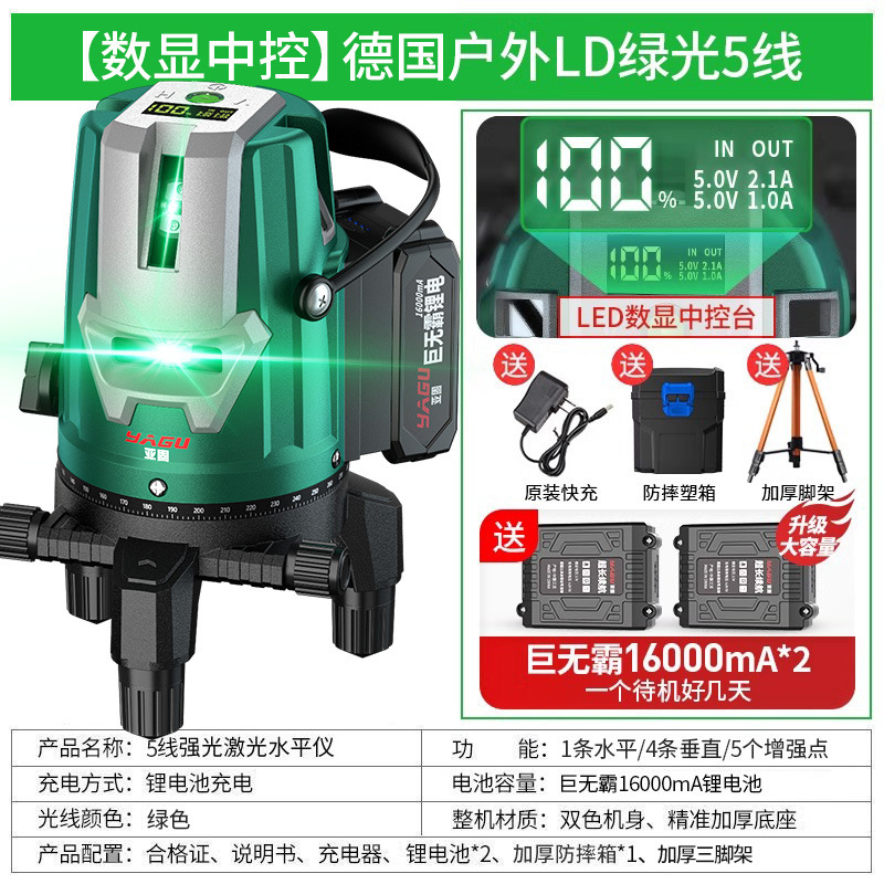 • 실외 녹색등 5줄 [럭셔리 박스 + 디지털 디스플레이 듀얼 배터리 + 두꺼운 삼각대] 밝기 조절 가능