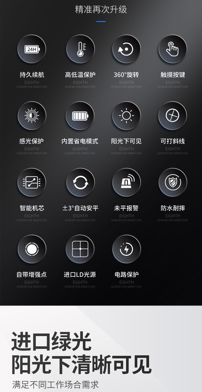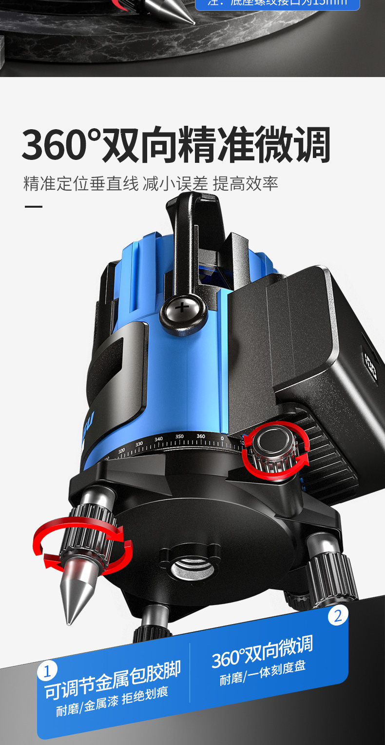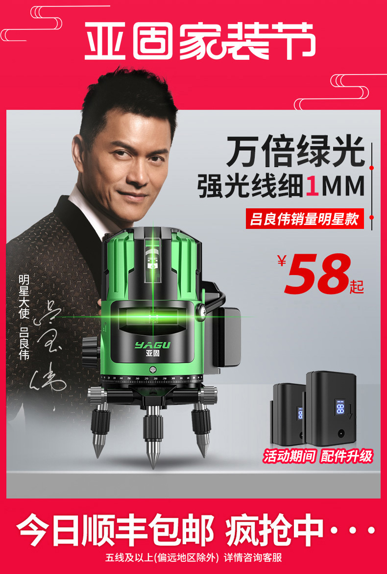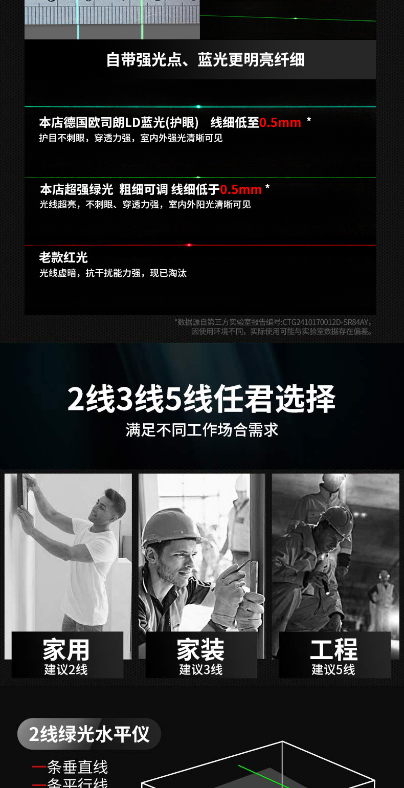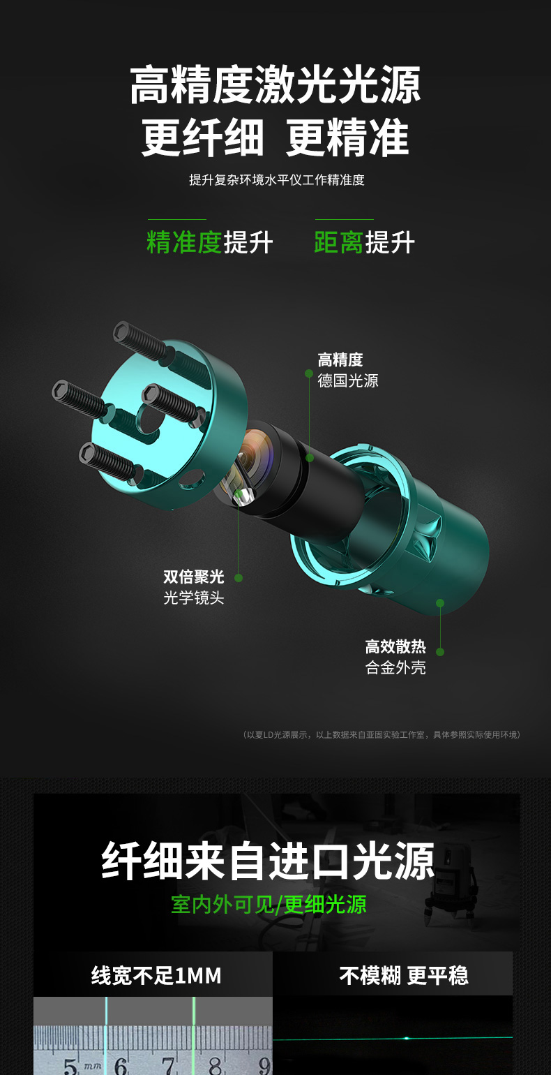 • 실외 녹색등 5줄 [럭셔리 박스 + 디지털 디스플레이 듀얼 배터리 + 두꺼운 삼각대] 밝기 조절 가능