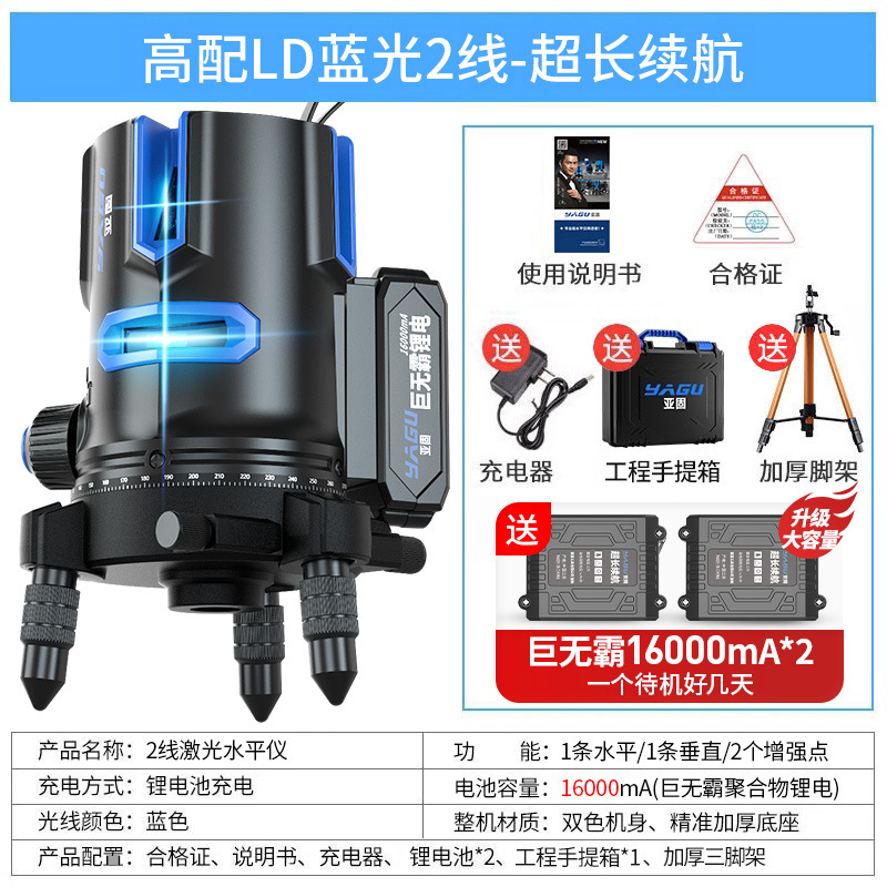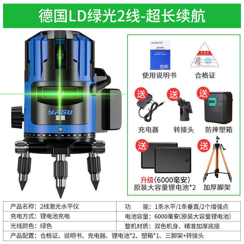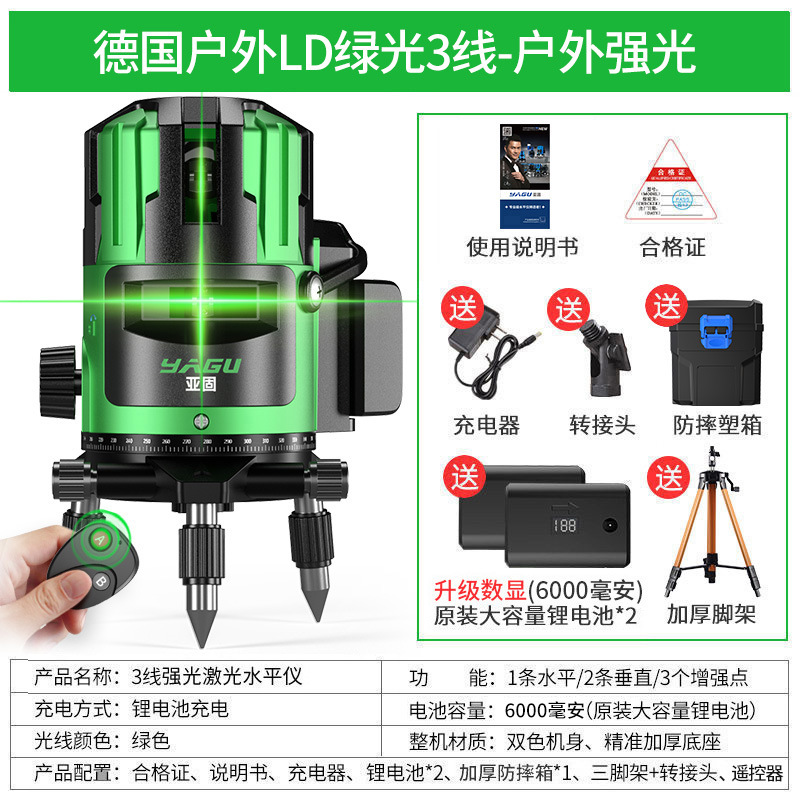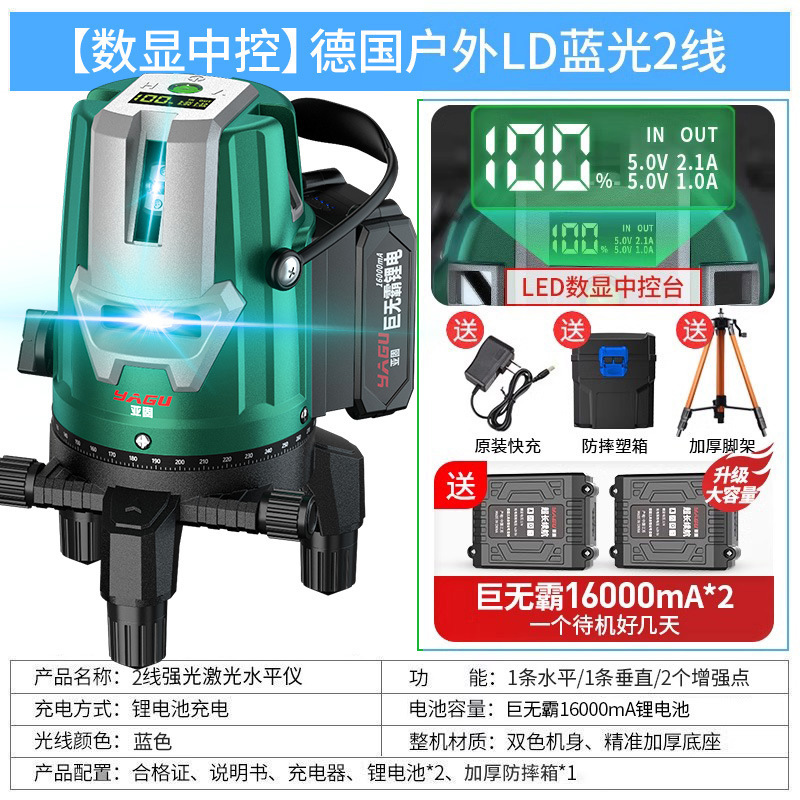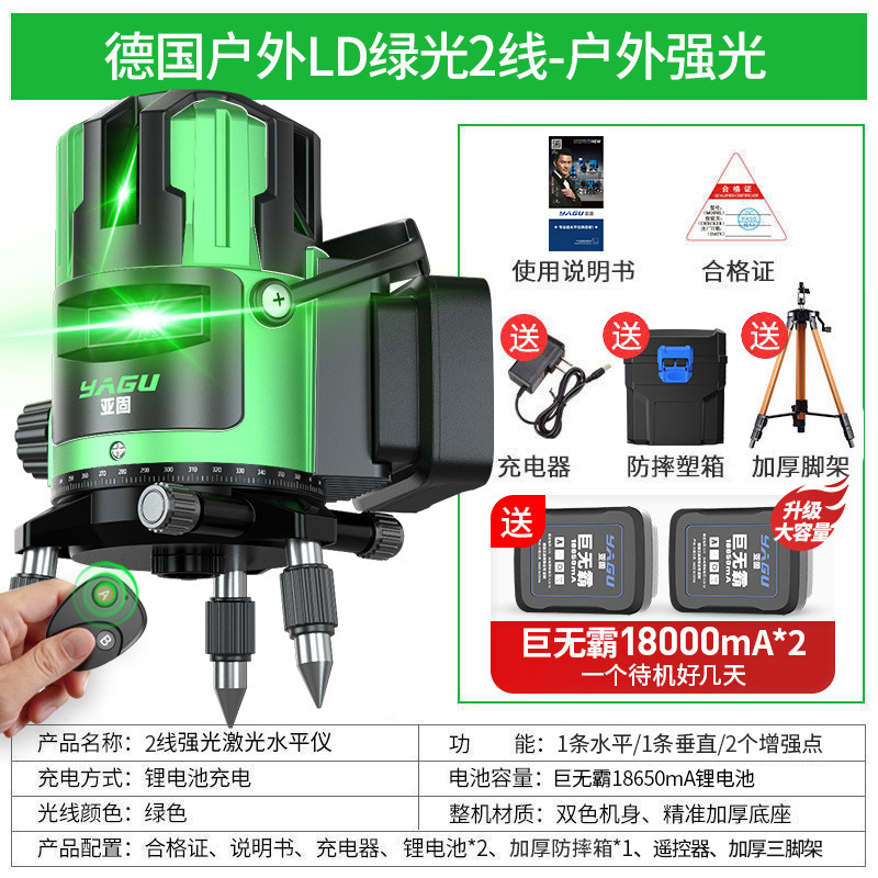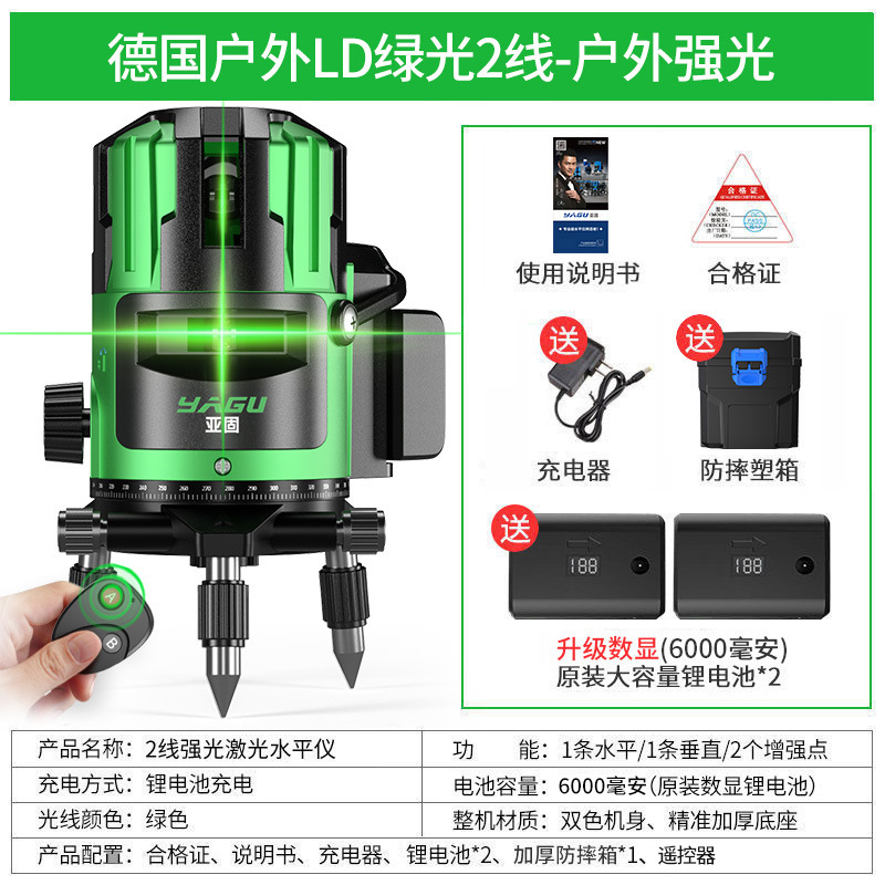 • 실외 녹색등 2줄 [럭셔리 박스 + 디지털 디스플레이 듀얼 배터리 + 두꺼운 삼각대] 밝기 조절 가능