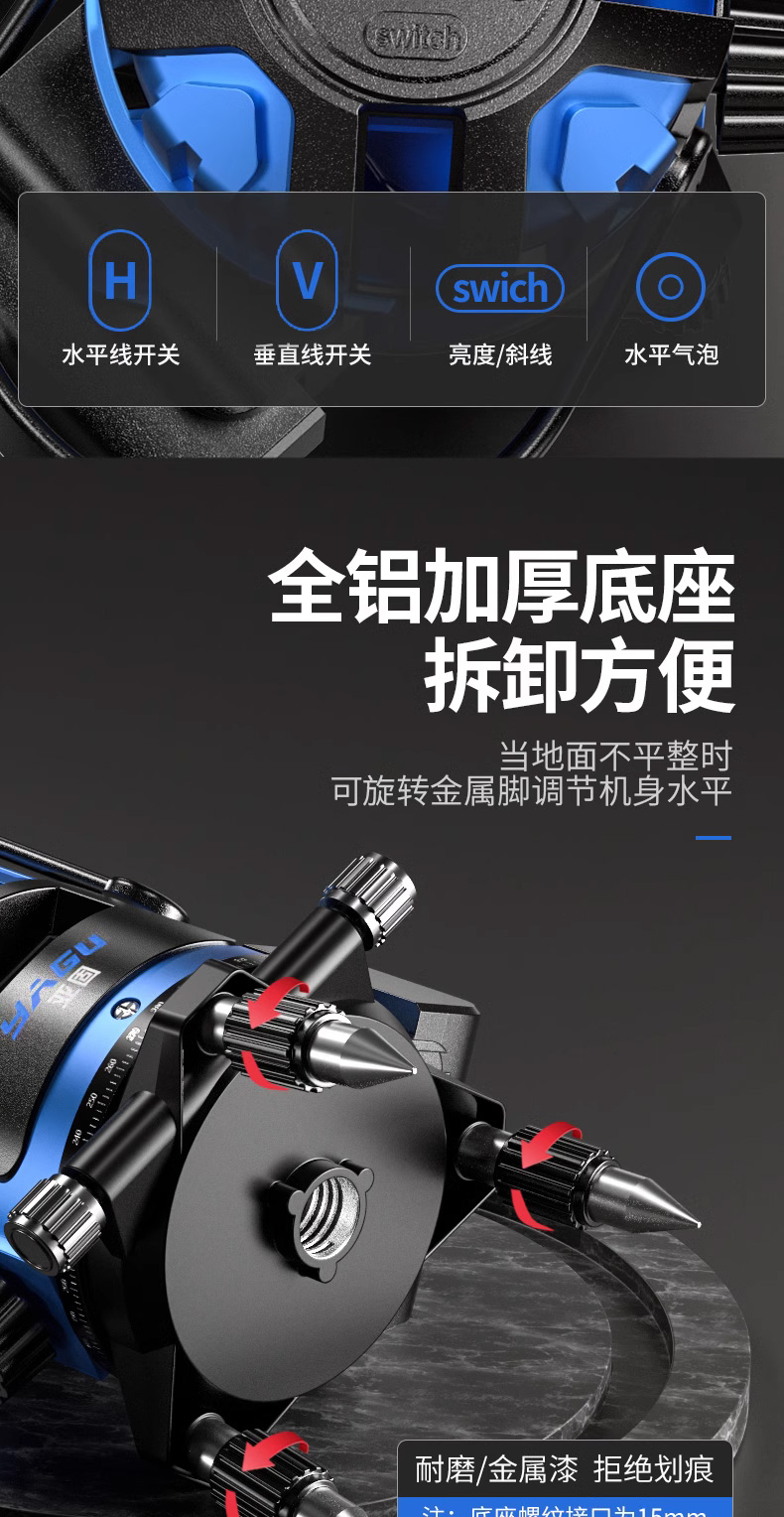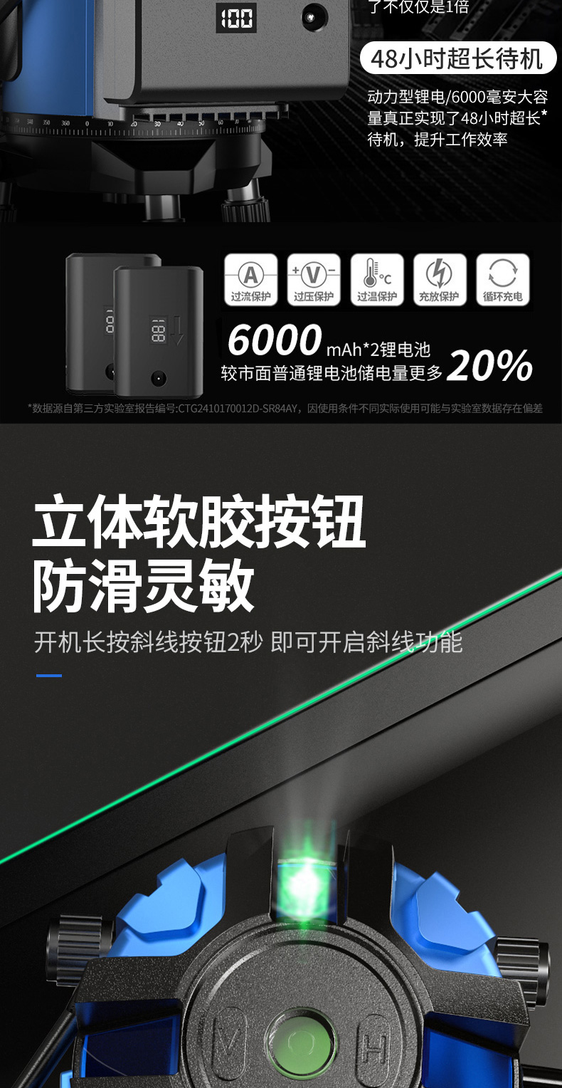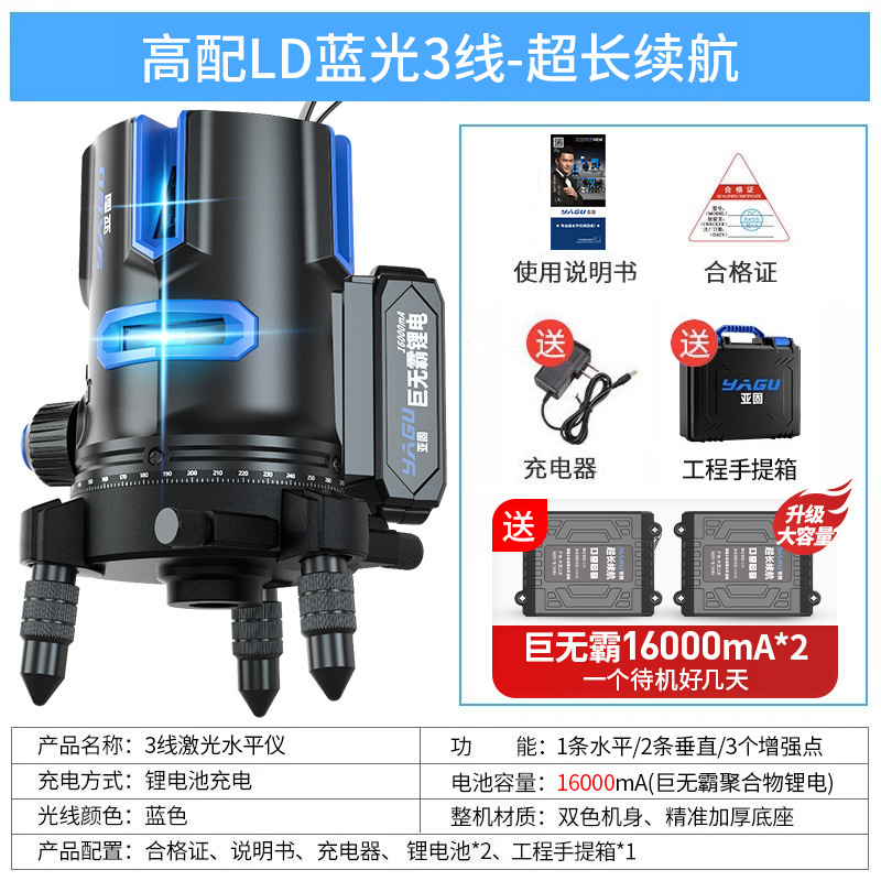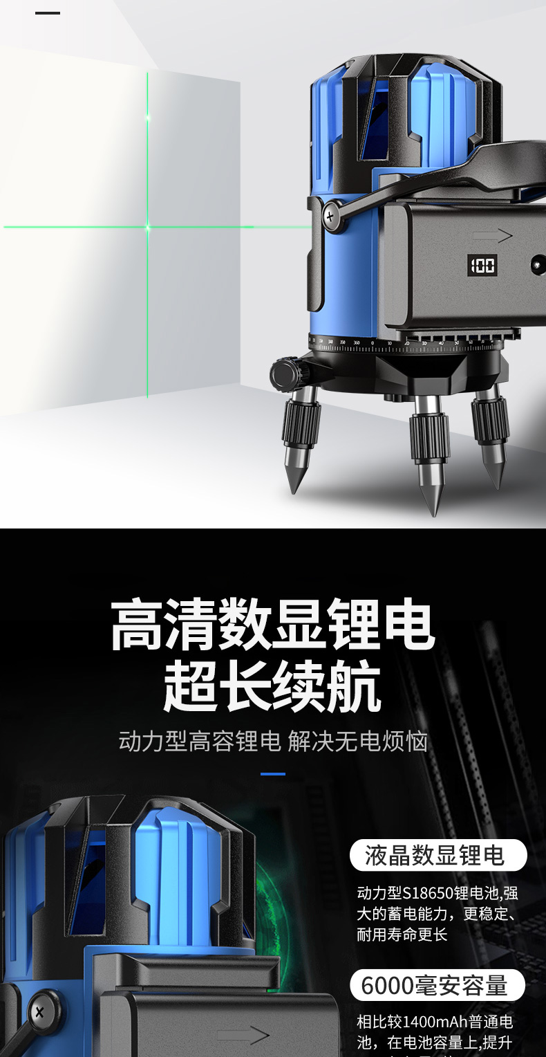 • 실외 녹색등 2줄 [럭셔리 박스 + 디지털 디스플레이 듀얼 배터리 + 두꺼운 삼각대] 밝기 조절 가능