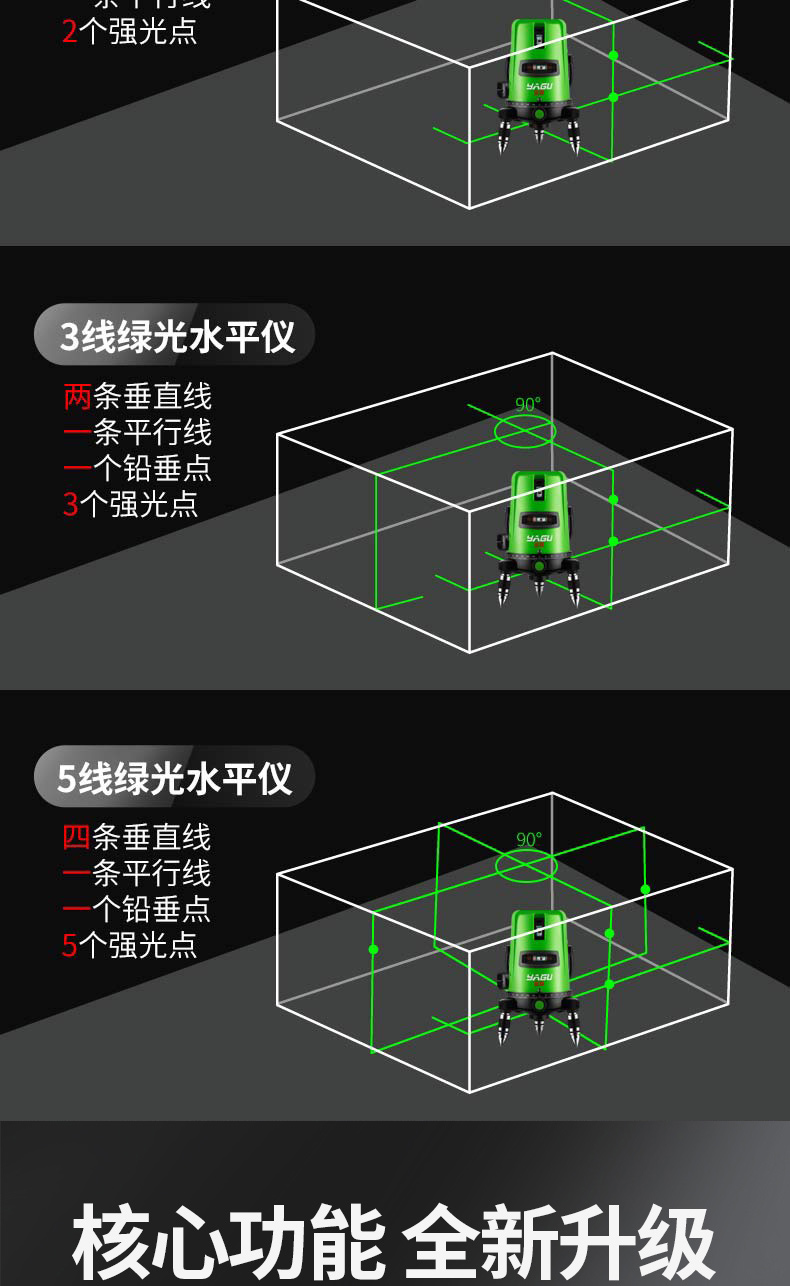 견고한 녹색 조명 레벨 레이저 2 라인 3 라인 5 라인 고정밀 강한 빛 미세 라인 적외선 자동 레벨링 워터 미터