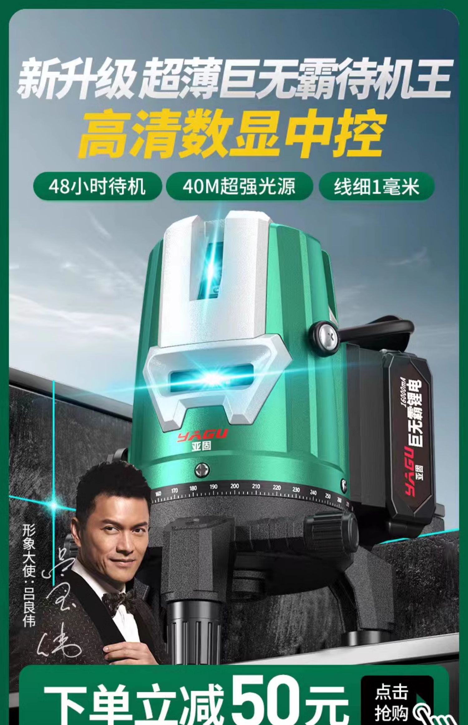 • [디지털 디스플레이 중앙 제어] LD 녹색등 2줄 [리모컨 + 빅맥 16000mA] 두꺼운 삼각대