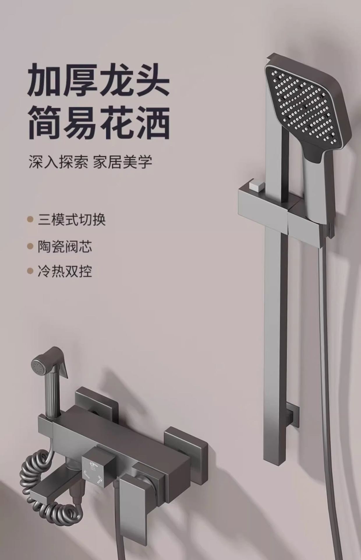 총 회색 간단한 샤워 가정용 샤워 세트 비탑 스프레이 모든 구리 차갑고 뜨거운 일정한 온도 비 목욕 노즐 샤워스토어 가기